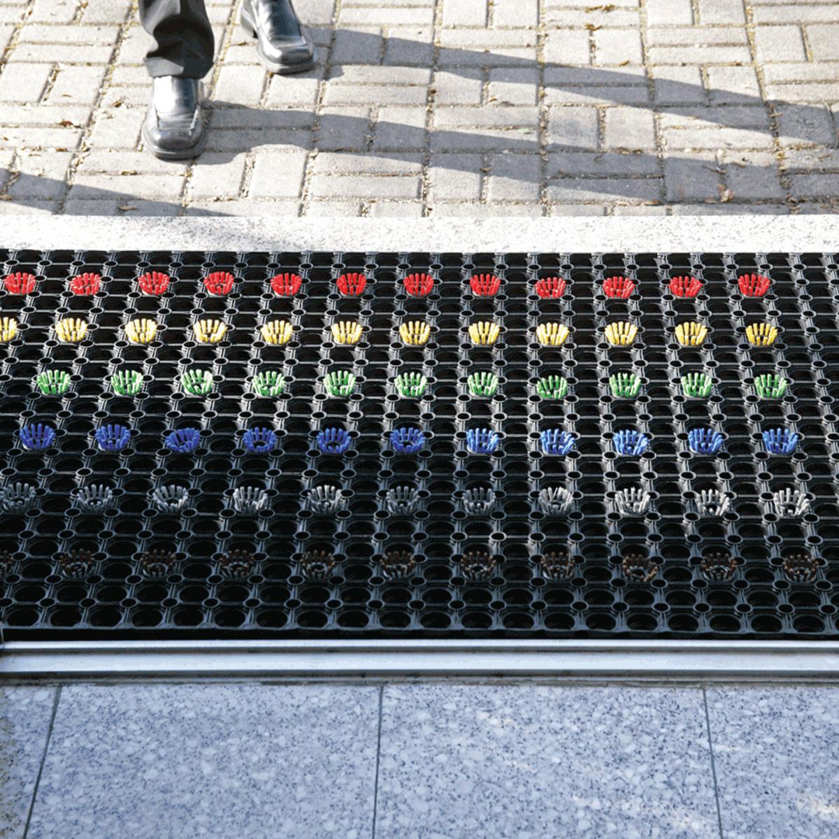 Rutsch- und wetterfeste Matte und Verbindungsstück mit hoher Schmutzaufnahme.