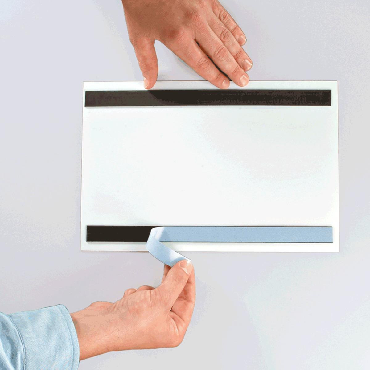 Die Magnetbänder haften auf Stahlblech, eisenimprägniertem Karton und allen ferromagnetischen Werkstoffen. Sie lassen sich einfach und schnell entfernen und an anderer Stelle wieder anbringen. Die Magnetbandabschnitte sind beschriftbar und haben eine sehr gute Haftkraft. Ideal geeignet zum nachträglichen Bestücken von Schildern, Regalgangkennzeichnungen, Warntafeln, Anweisungen, Transporttaschen oder auch anderen Hinweisen.