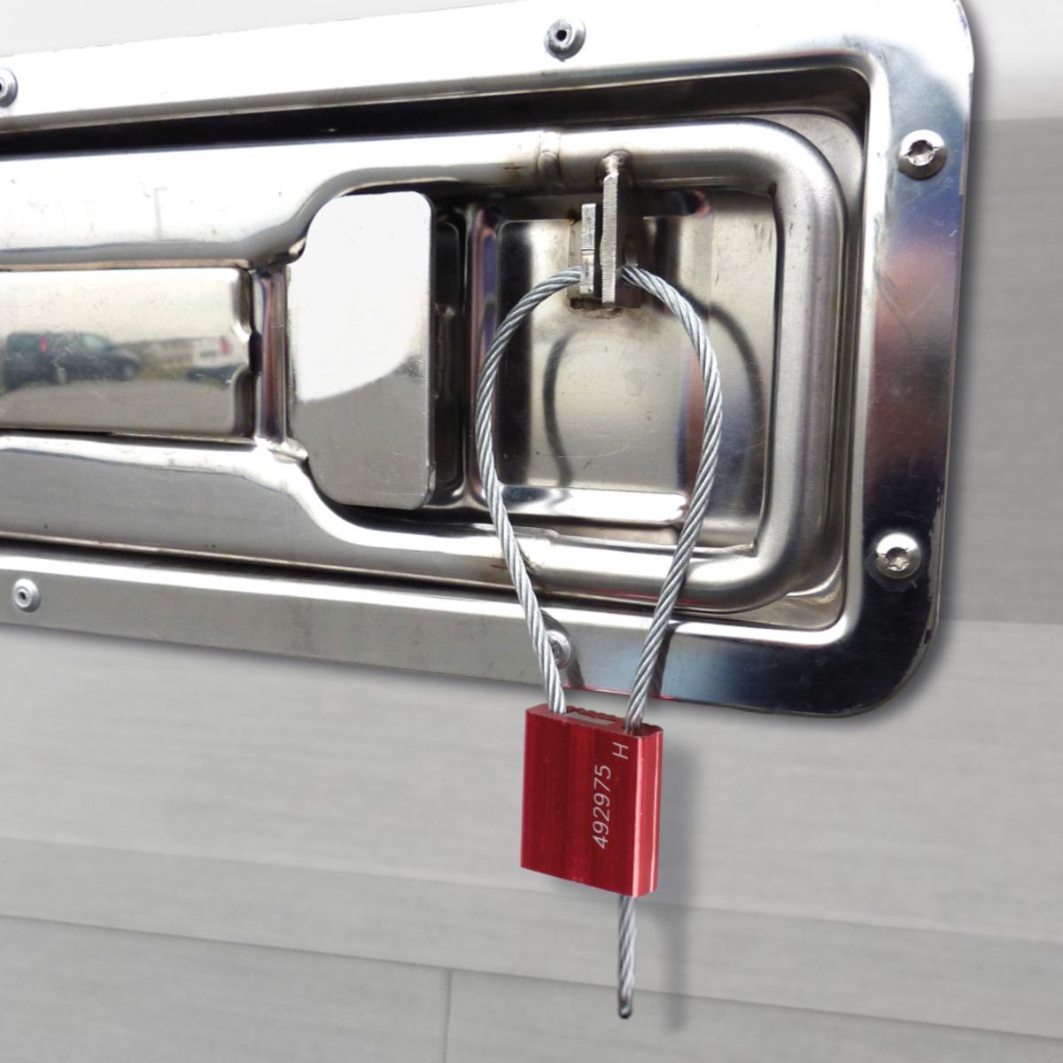 Auswahl: Sicherheitsplomben CABLE SEAL, fortl.Nummer, rot, Stahlseil/Aluminium, 250mm, 100/VE