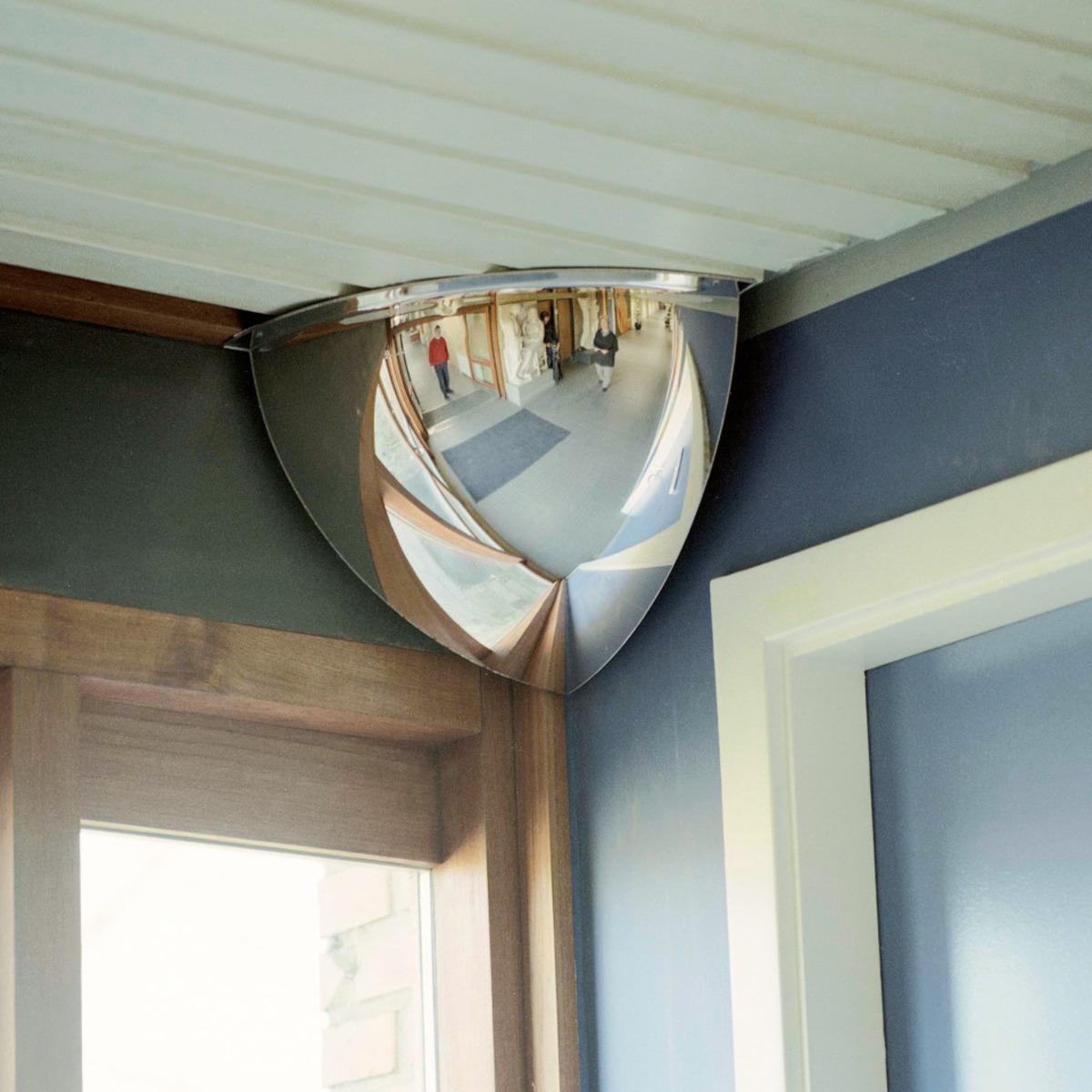 90°-Spiegel, welcher in Eckbereichen einen optimalen Einblick in unübersichtliche Kreuzungen bietet. Für die Überwachung von Verkaufs- und Ausstellungsräumen, zur Vermeidung von Zusammenstößen und Unfällen