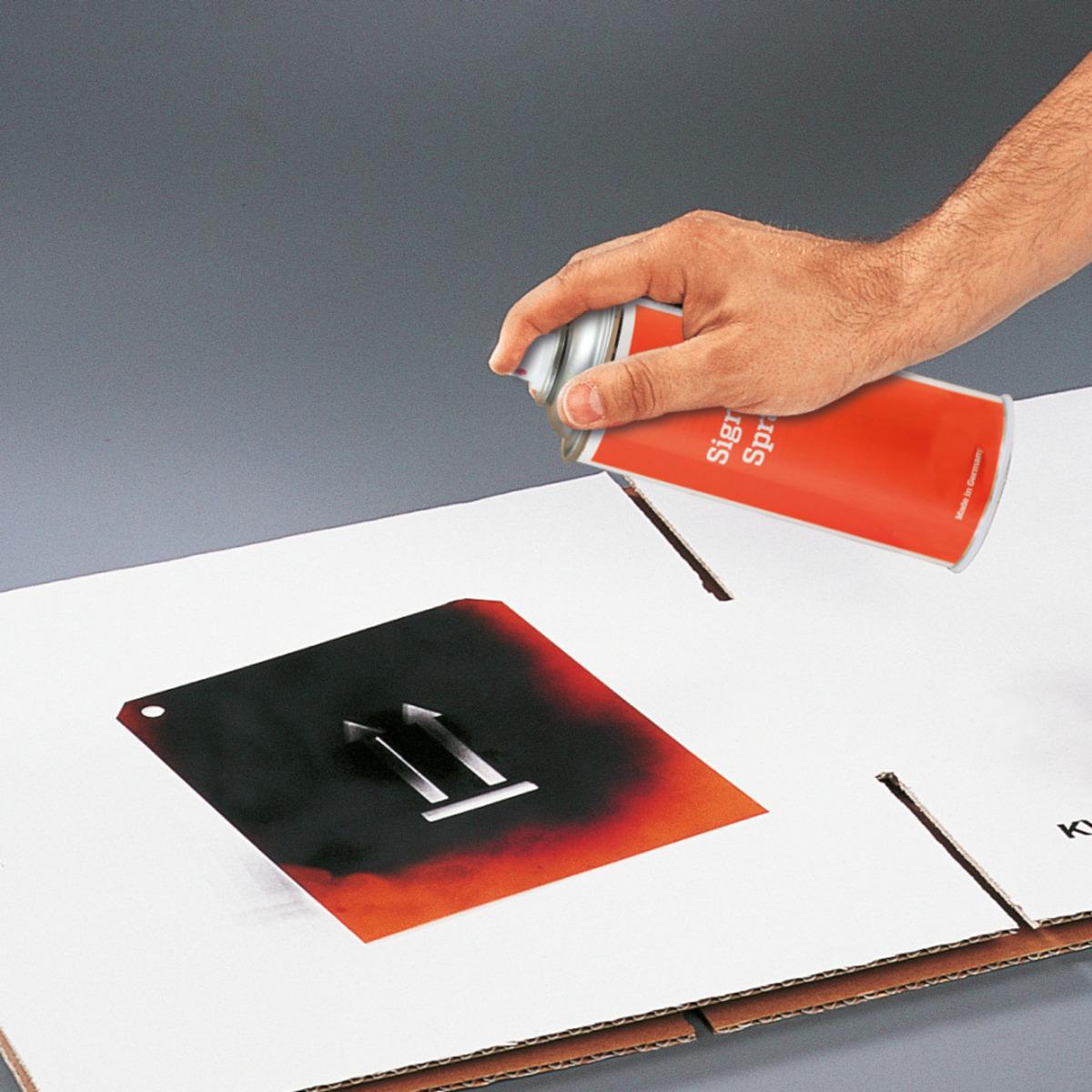 Signierspray zur Kennzeichnung von Transportverpackungen.