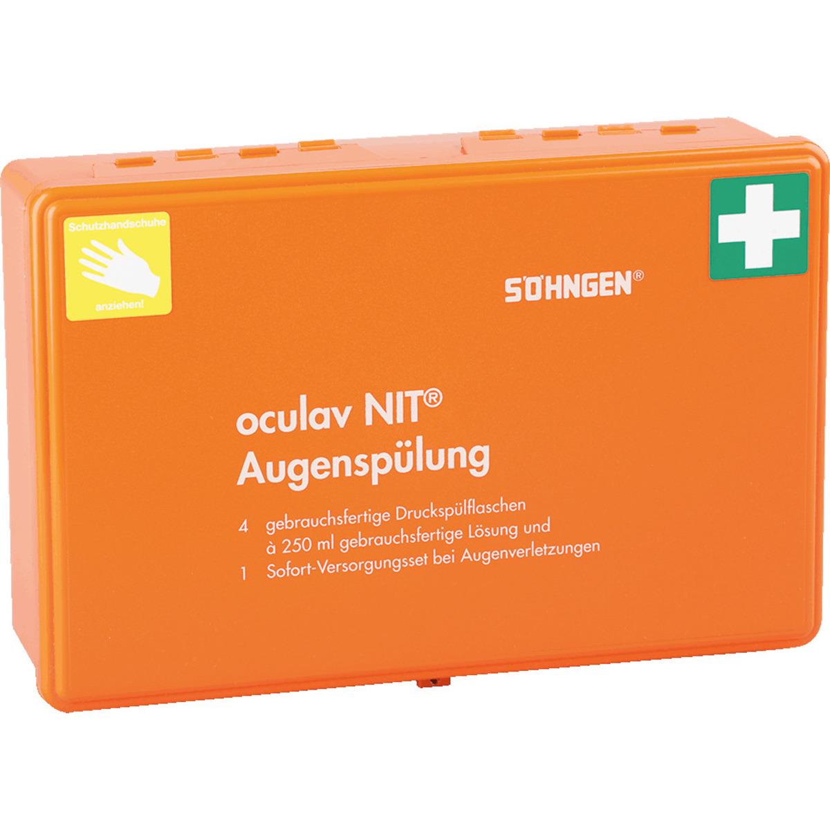 SÖHNGEN® Augenspülbox mit gebrauchsfertiger Augenspülung Oculav NIT® für eine sofortige Spülung der Augen und des Bindehautsackes nach Kontakt mit Säuren oder Laugen.