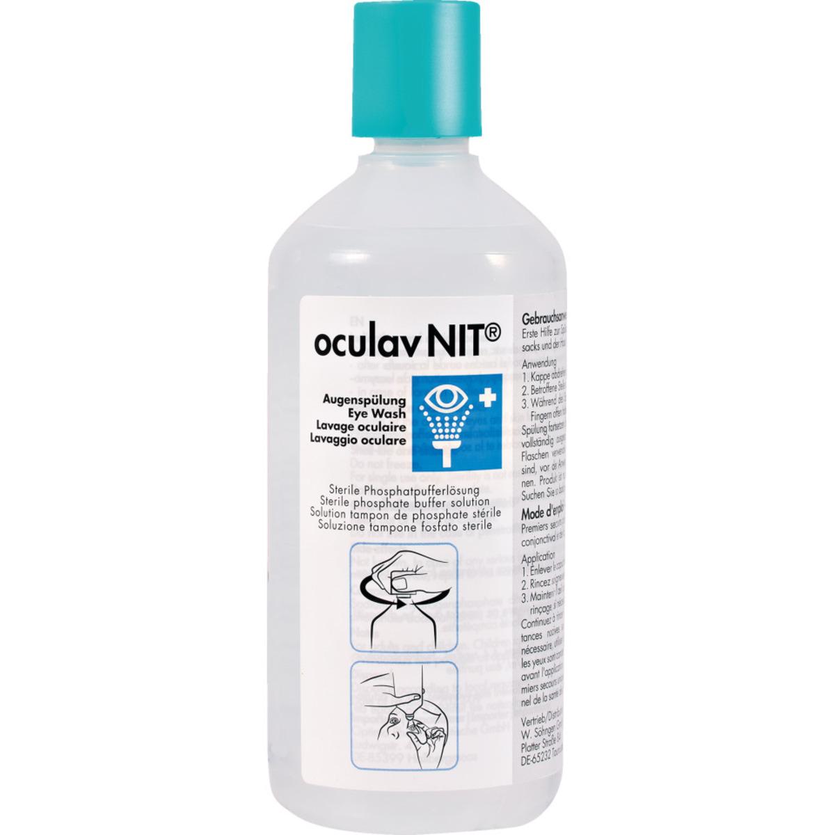 Gebrauchsfertige SÖHNGEN® Augenspülung Oculav NIT® für eine sofortige Spülung der Augen und des Bindehautsackes nach Kontakt mit Säuren oder Laugen.