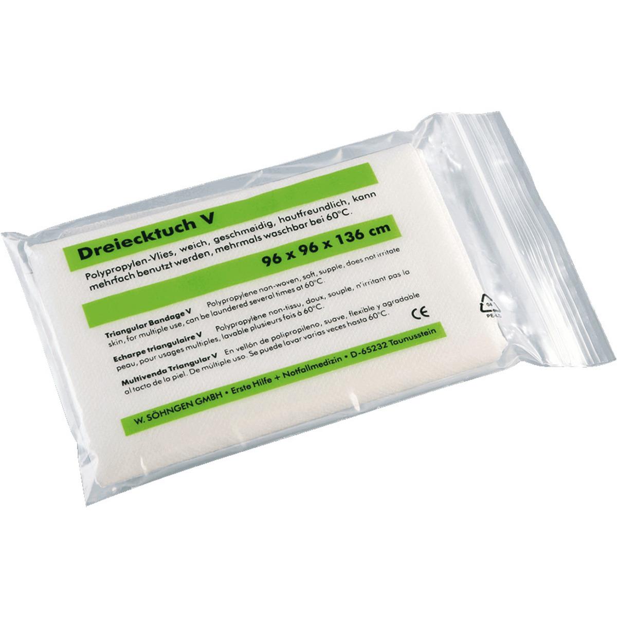 Dreiecktuch zur Fixierung von Kompressen oder Polsterung von Wunden, kann auch als Armschlinge bei Arm- und Schulterverletzungen oder zur Ruhigstellung von Frankturen eingesetzt werden.