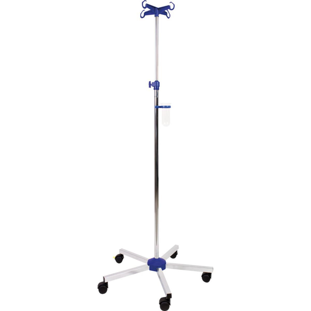 SÖHNGEN® Infusions-Fahrstativ mit 5-strahligem Formfußkreuz mit Laufrolle, stufenlos höhenverstellbar, mit 4 Haken für Infusionsflaschen.
