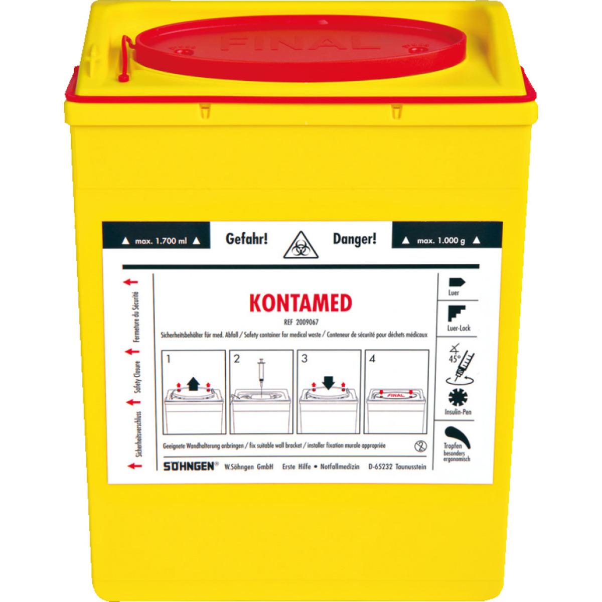 Medizinischer Abfallbehälter SÖHNGEN® Kontamed zur sicheren Entsorgung von medizinischen Abfällen, Abziehschlitz für Kanülen/Spritzen, Federlasche für Kompressen oder Einmalhandschuhe, mit Sicherheitsblende