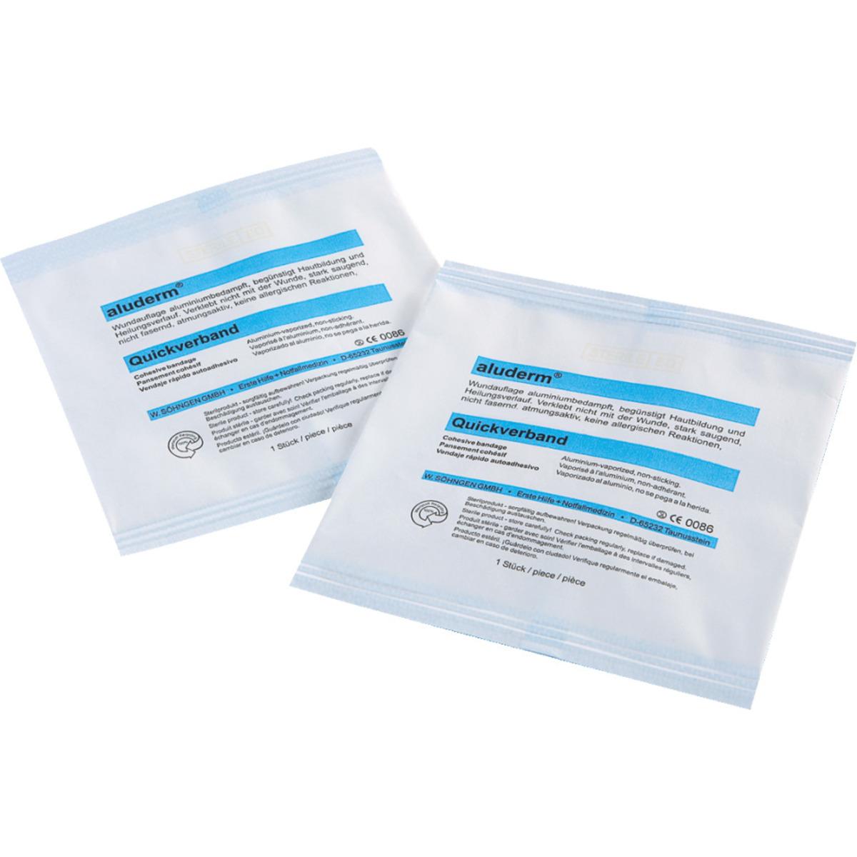 aluderm® Quickverband für alle oberflächlichen Wunden, Verletzungen, Brandwunden, Schürfwunden, Riss- und Schnittverletzungen. Verklebt nicht mit der Wunde, stark saugend, atmungsaktiv, hypoallergen.