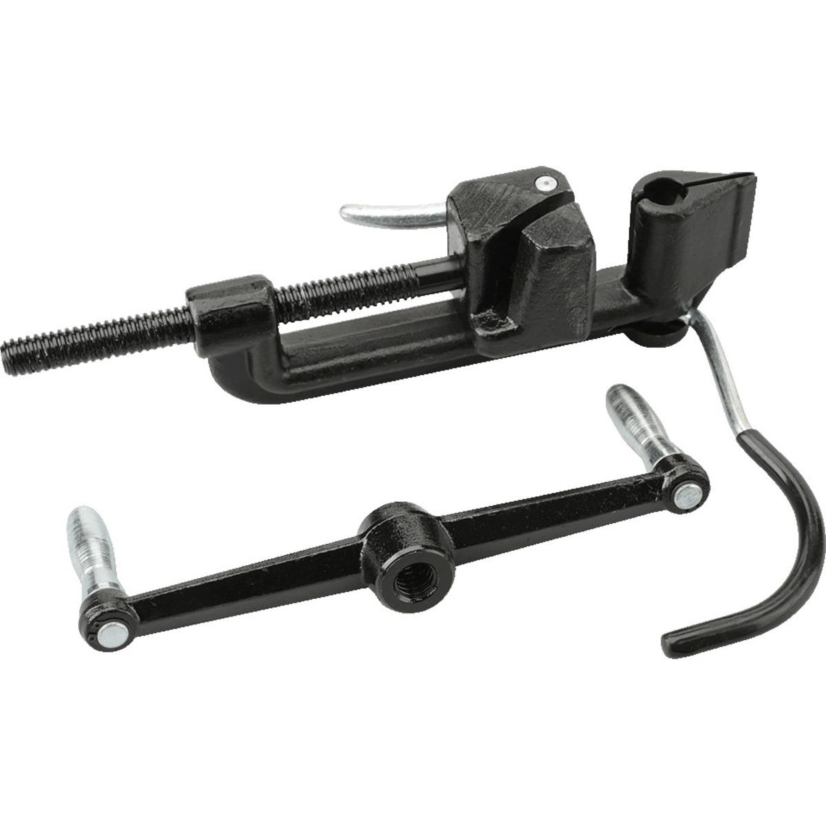Spannwerkzeug zur Befestigung von Bandschellen. Geeignet für runde, eckige und achteckige Pfosten.