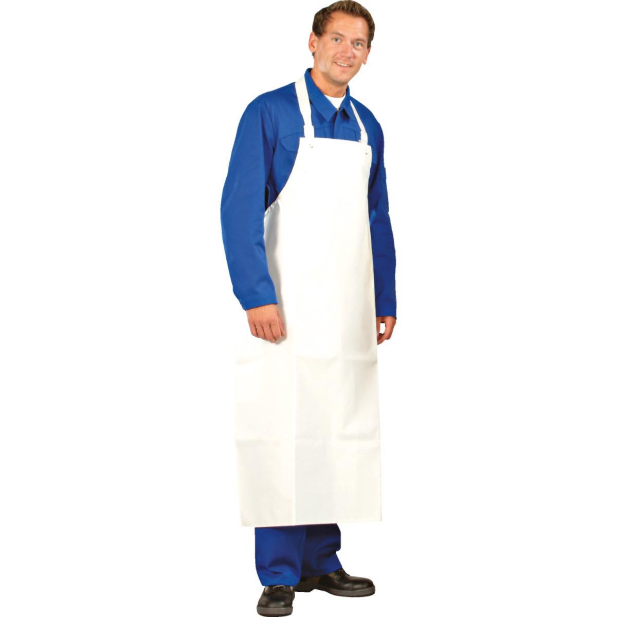 Widerstandsfähige Schürze mit beidseitig beschichtetem Gewebe, reißfest, flüssigkeitsdicht, beständig gegen viele Säuren, Laugen und synthetische Öle und Fette, an Nacken und Taille stufenlos verstellbar