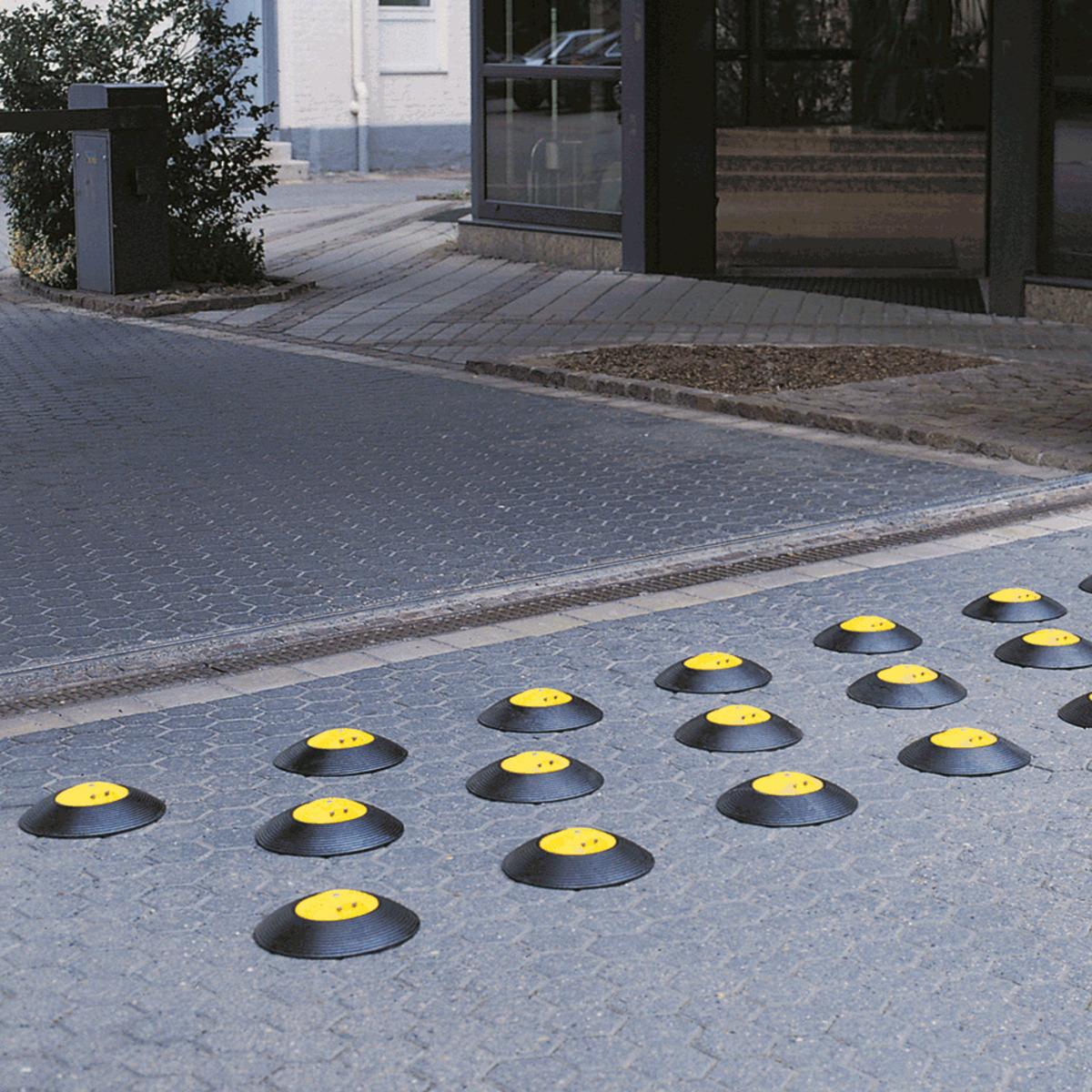 Tempo-Stopp-Nägel Speed-Stop zur Geschwindigkeitsreduzierung und Verkehrslenkung, beidseitig 2 Reklektoren, dadurch auch bei Dunkelheit gut sichtbar, tritt- und rutschfeste Oberfläche, auch bei Nässe, gegen Verdrehen gesichert