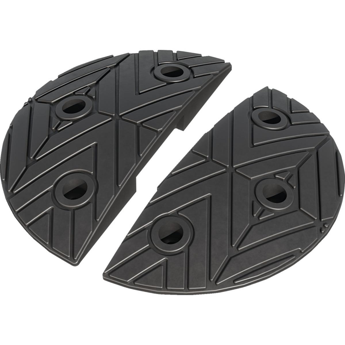 Tempo-Stopp-Ronden aus einem Anfangs- und einem Endstück für Tempo-Stopp-Schwellen, mit integrierten Reflektoren, einfache Montage durch Stecksystem(Nasen), kann zusätzlich mit Durchsteckangern fest verankert werden, sicheres Überfahren der Schwelle durch strukturierte, rutschfeste Oberfläche.