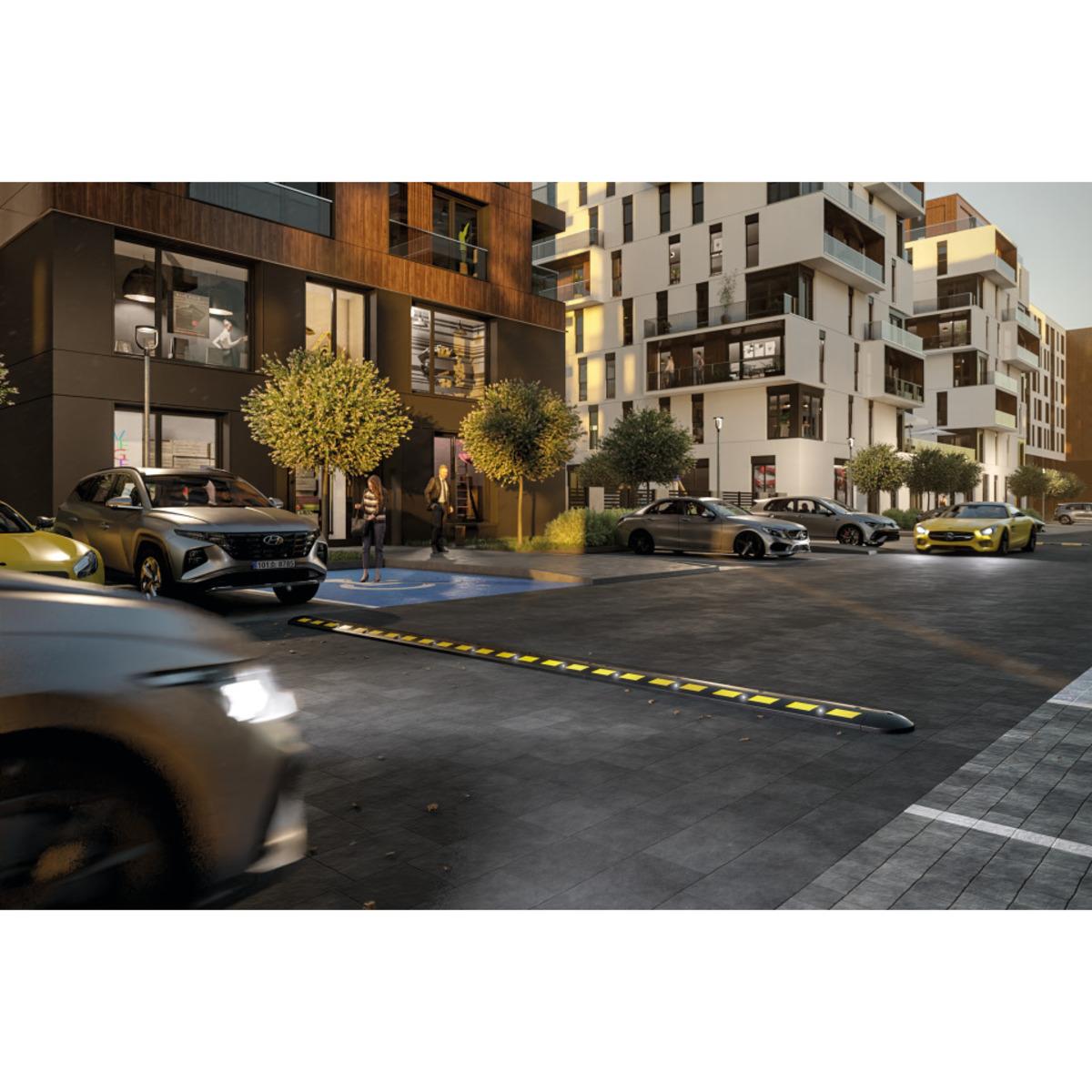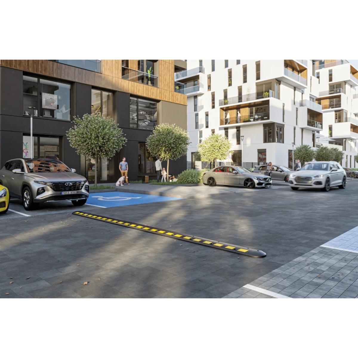 Auswahl: Tempo-Stopp-Schwellen, lang, Mittelteil, schwarz/gelb, Gummi, 1800x300x75mm