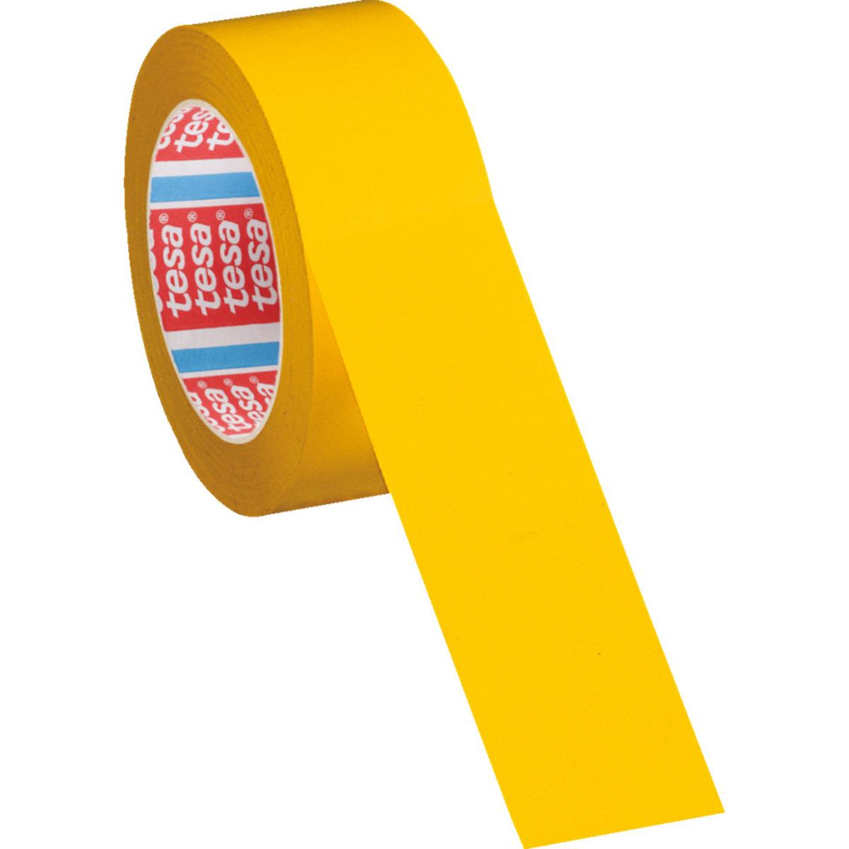 Multifunktionales tesa® Bodenmarkierungsband für farbige Markierungen im Innen- und Außenbereich, sehr hohe Klebkraft, robust und langlebig, wetterbeständig und abriebfest, auch zum Bündeln, Befestigen, Verschließen von z.B. Verpackungen, Abdichten von Bohrlöchern, Geräusch- und Scheuerschutz oder als Schutz bei scharfkantigen Gegenständen einsetzbar