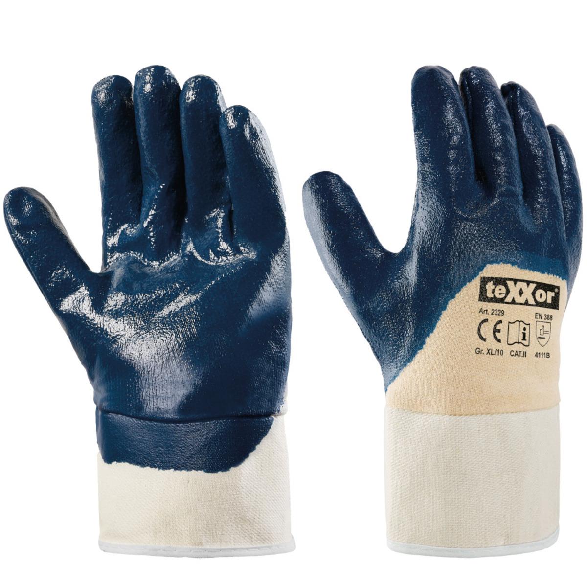 Auswahl: teXXor® Schutzhandschuh 2329, Kat.II, beige/blau, Nitril, 250mm, Größe 10