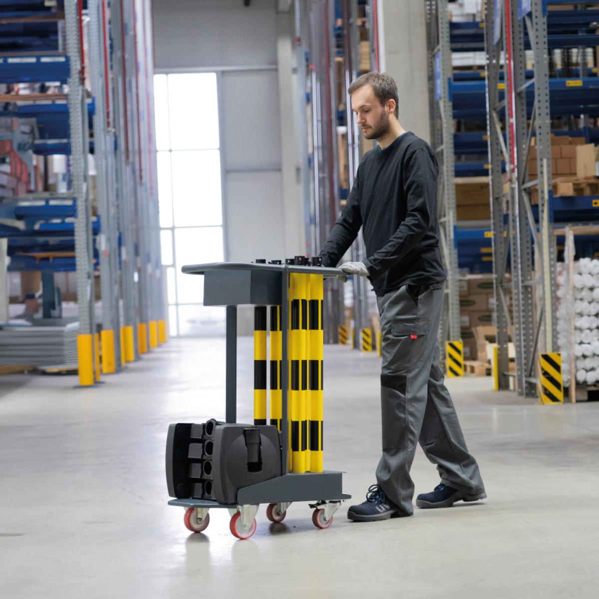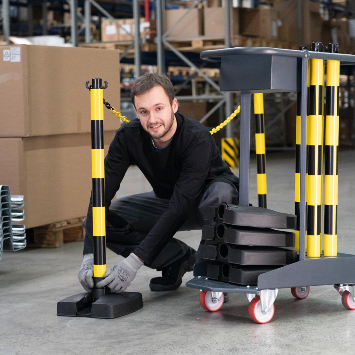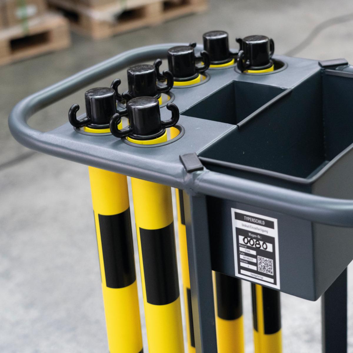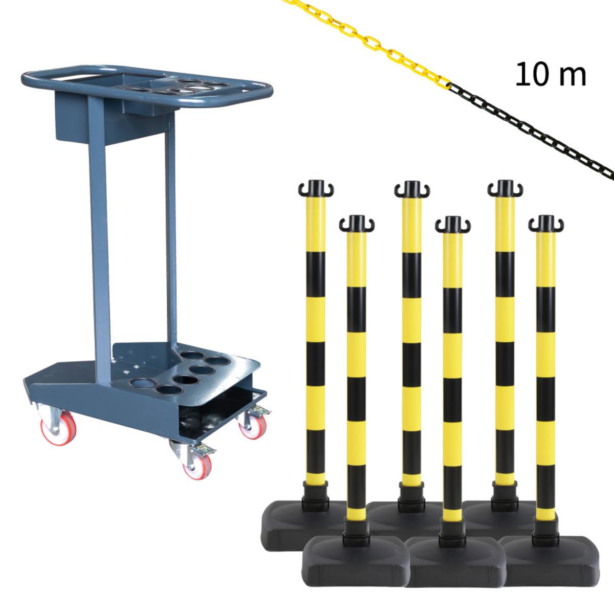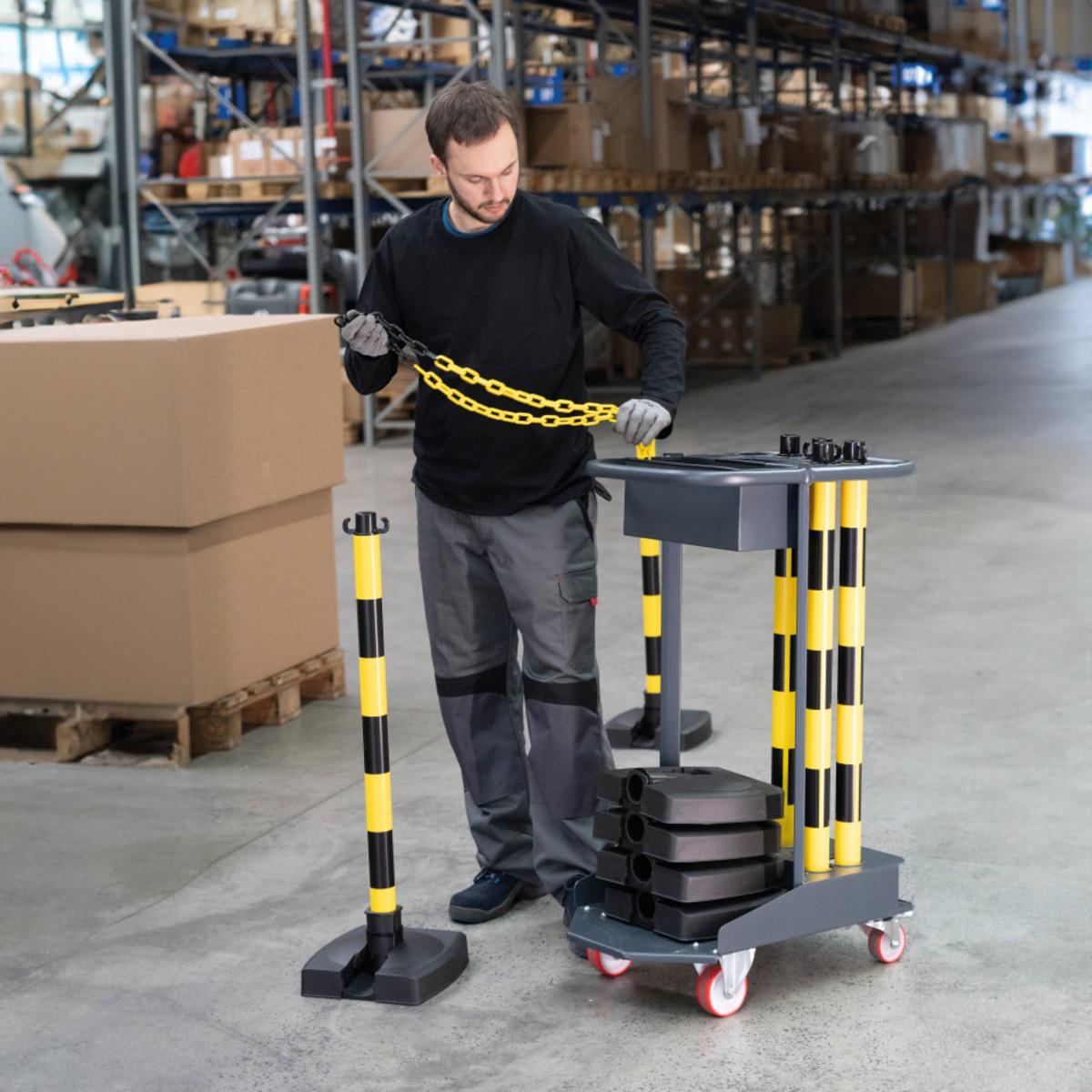 Auswahl: Transportwagen-Set mit Klapppfosten, gelb/schwarz, K.57 Kettenpfosten-Caddie, Kette