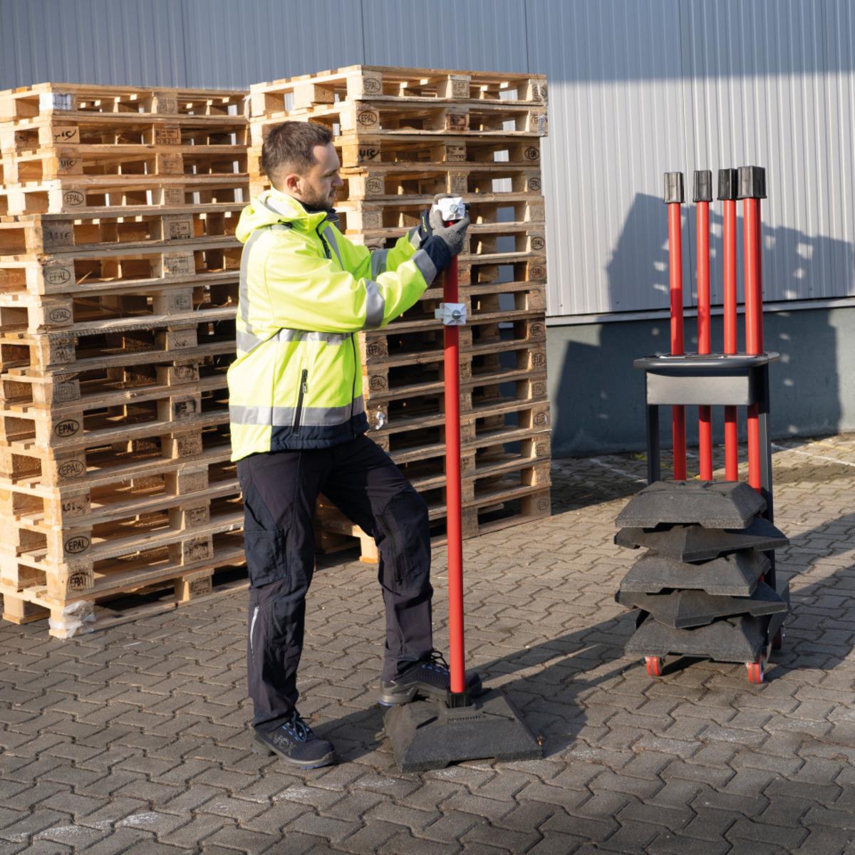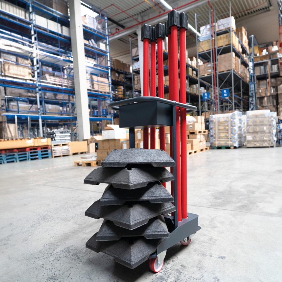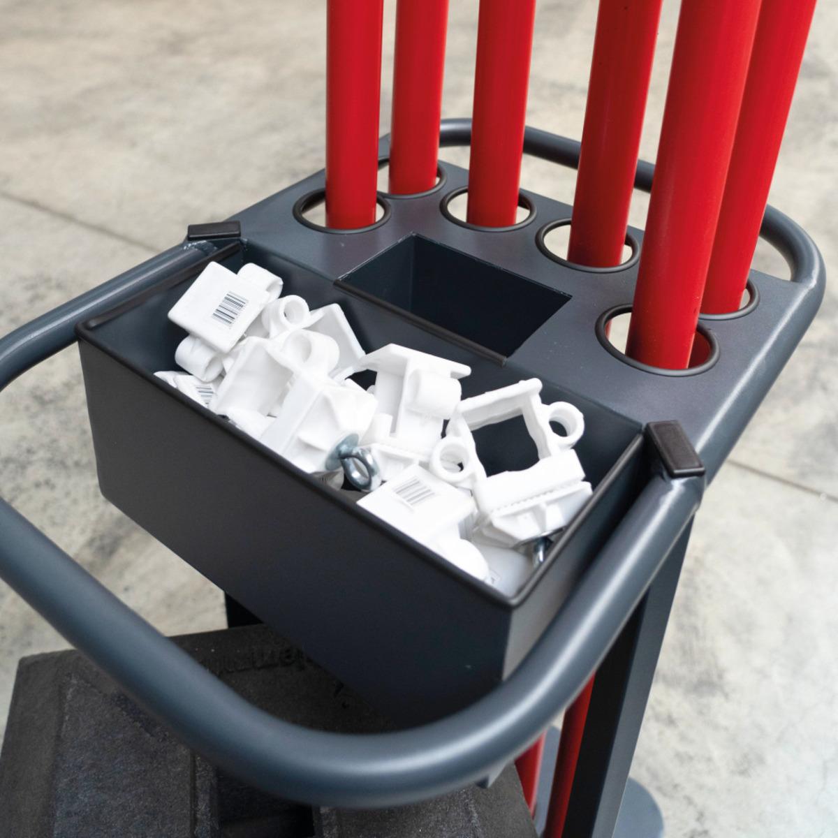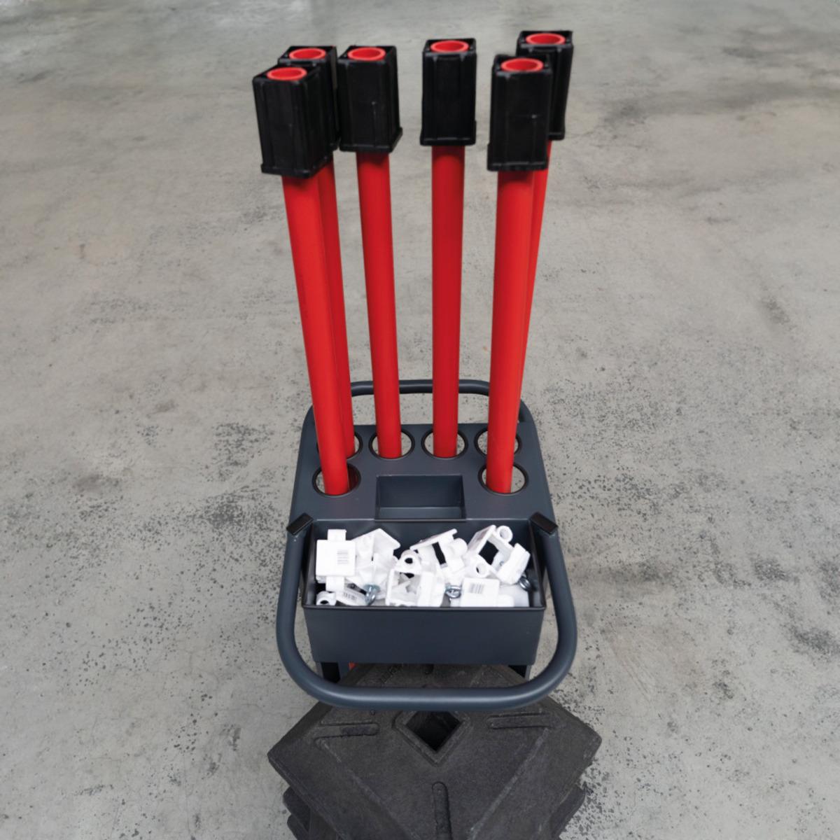 Transportwagen-Set mit Schaftrohren beinhaltet Kettenpfosten-Wagen Caddie, Schaftrohre, Fußplatte und Universalkelmmen.