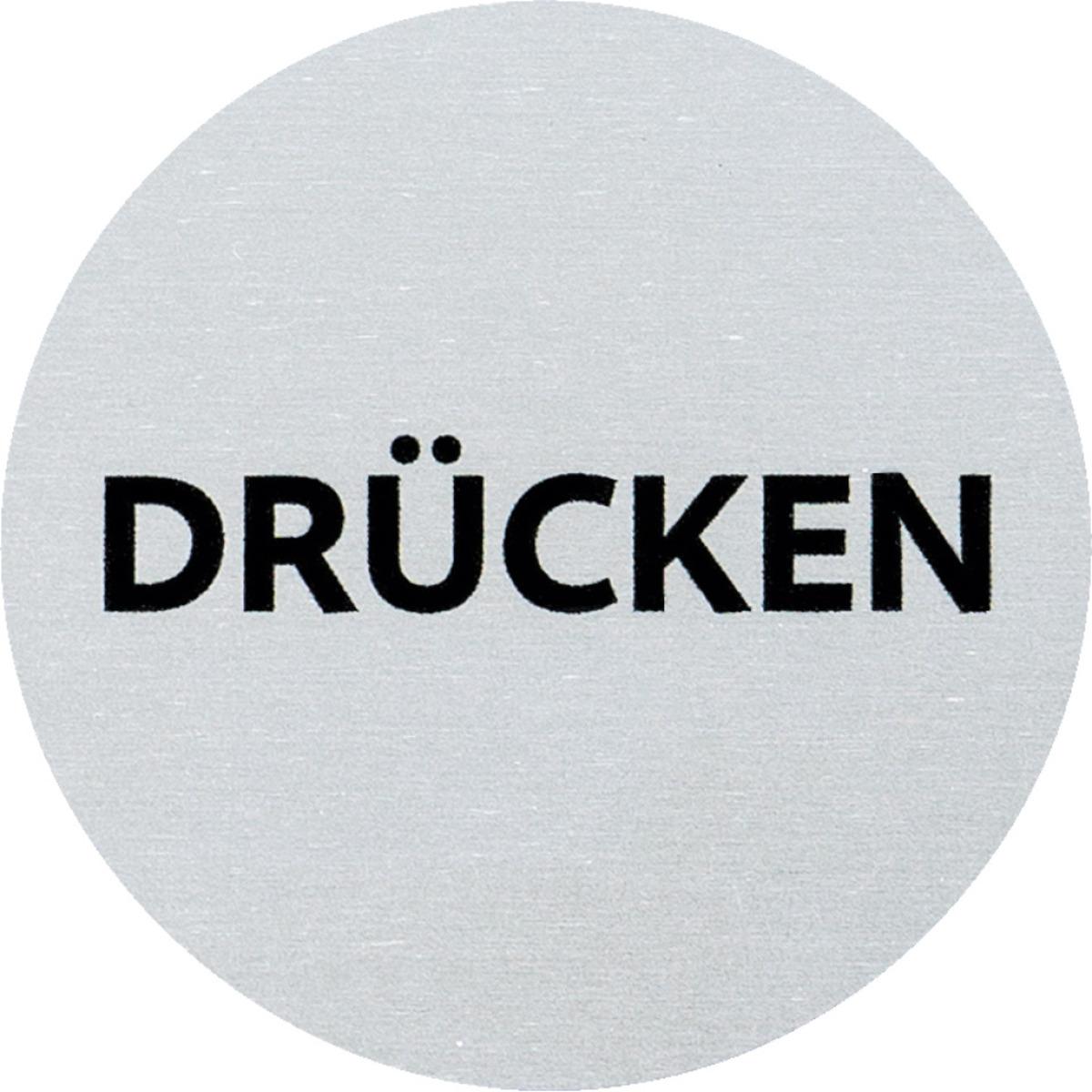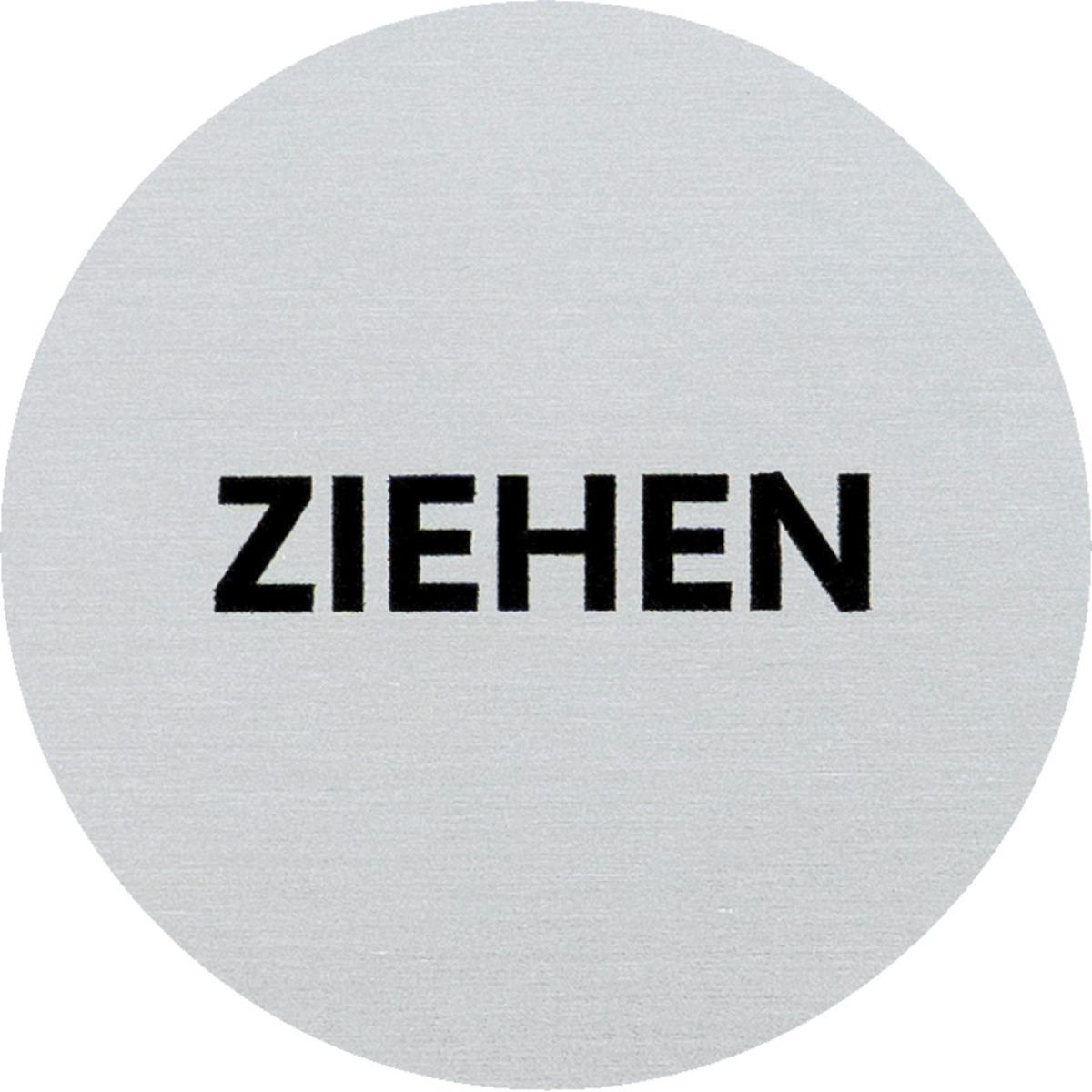 Auswahl: Türschild Ziehen, Vollaluminium, silber eloxiert, selbstklebend, Ø 60mm