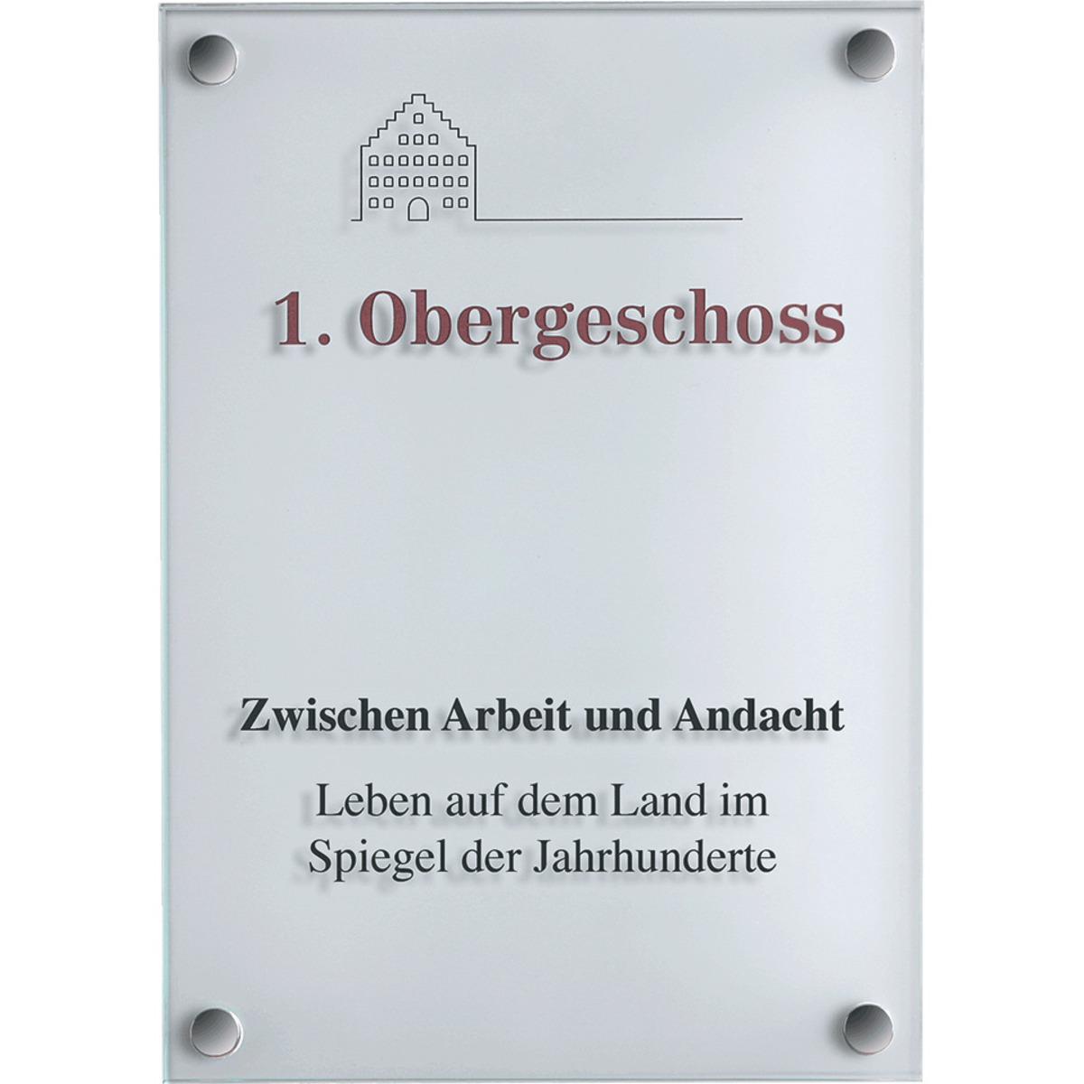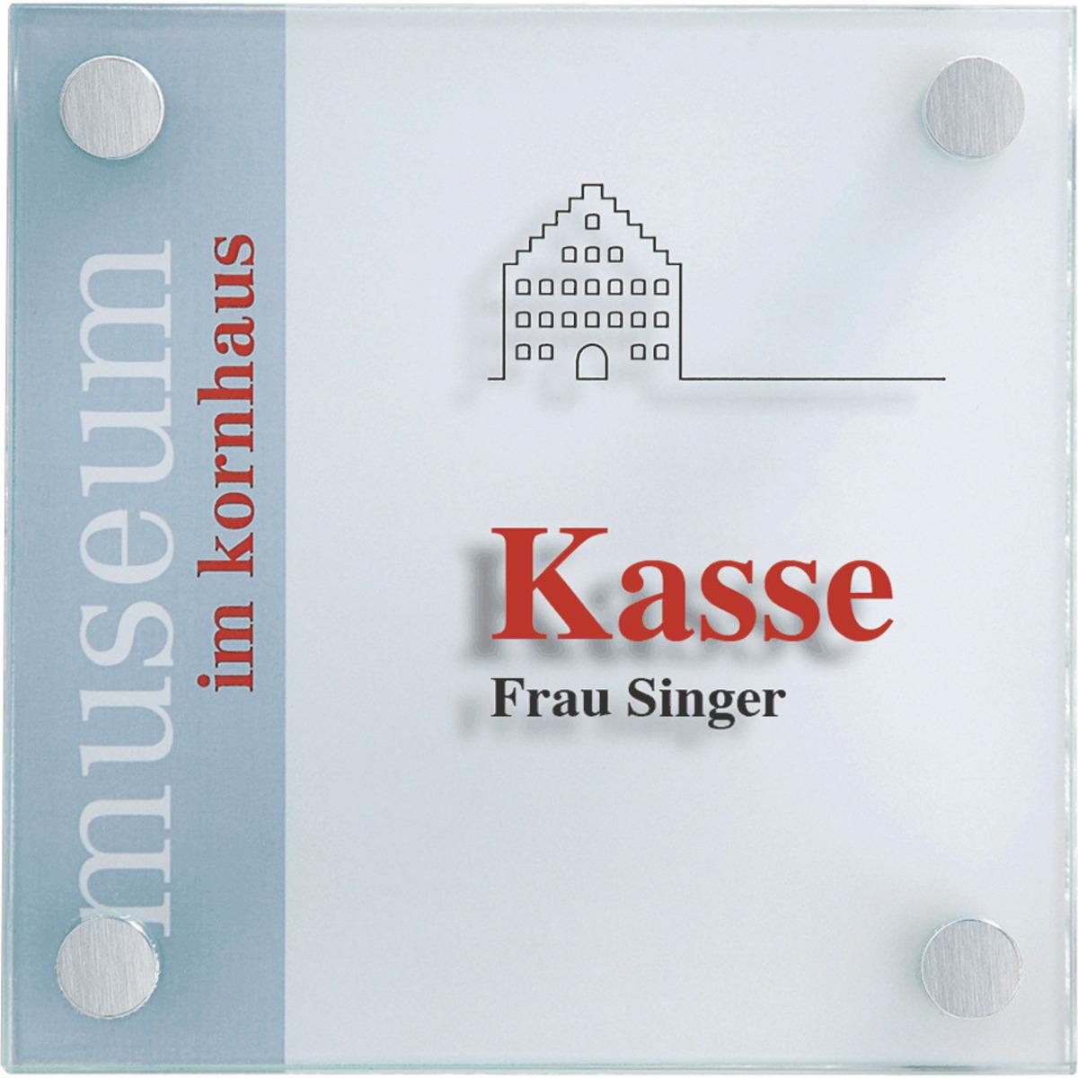 Auswahl: Raumschild Galerie, ESG-Glas, 150x150 mm, Lieferung inkl.Befestigungsmaterial