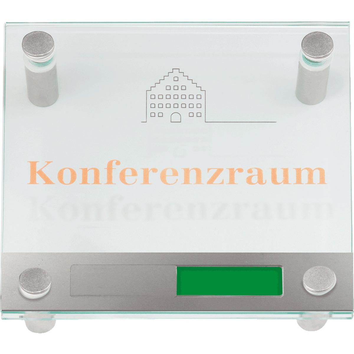 Kennzeichnen Sie Ihre Räumlichkeiten mit diesem repräsentativen Schild in elegantem Design. Die mitgelieferten Abstandshalter aus Edelstahl gewährleisten einen sicheren Abstand zur Wand und heben die Beschriftung gut lesbar hervor. Dieses Türschild ist in verschiedenen Formaten sowie optional mit einer "Frei/Belegt"-Anzeige erhältlich.