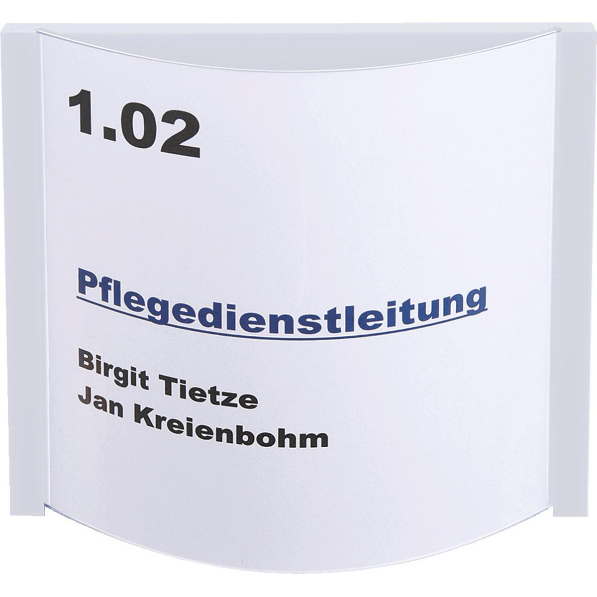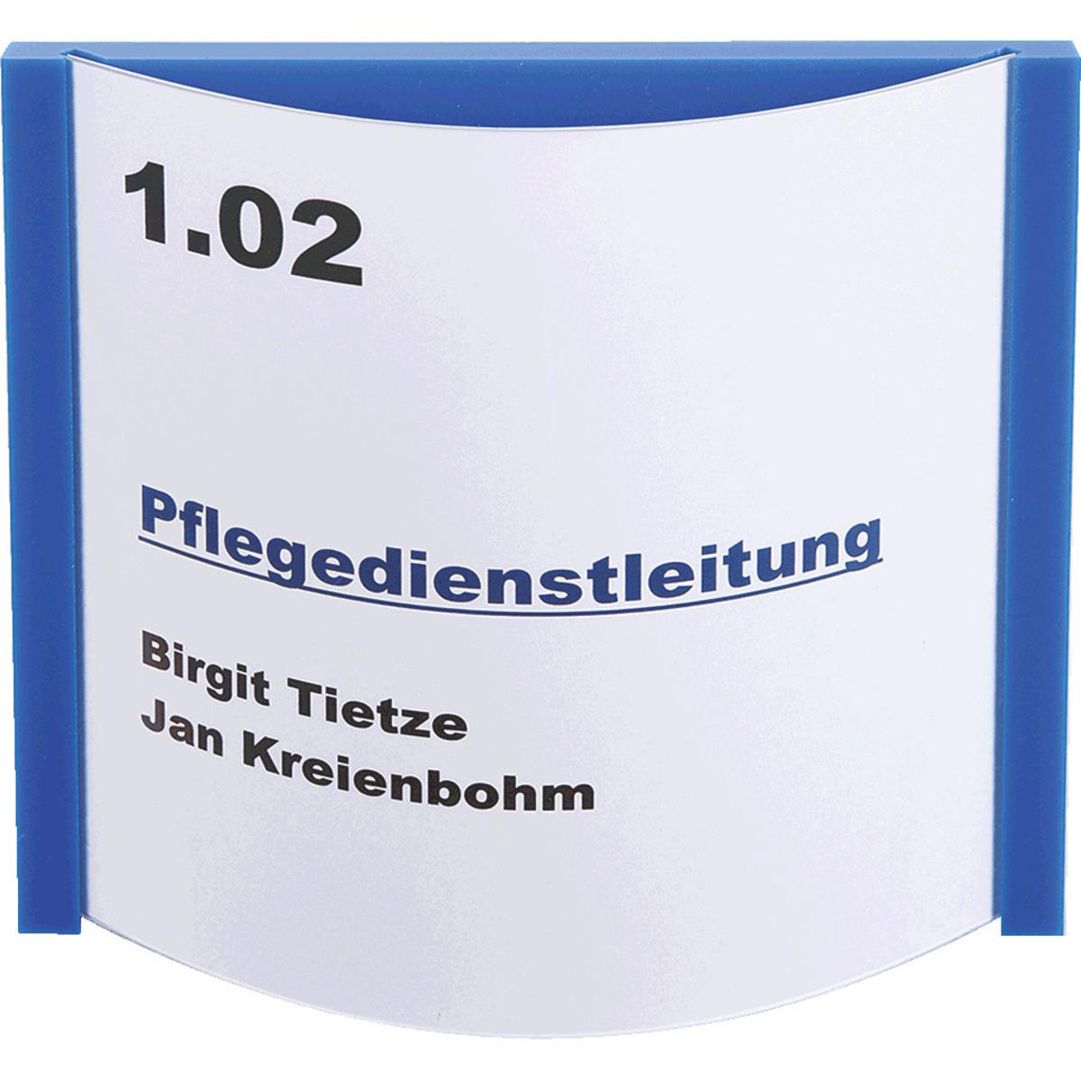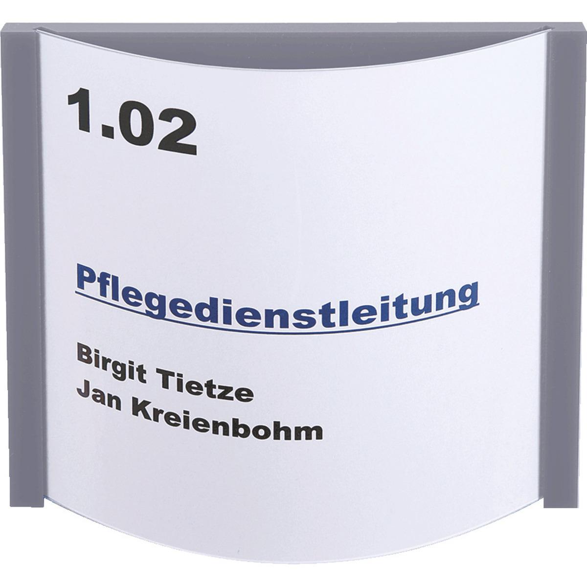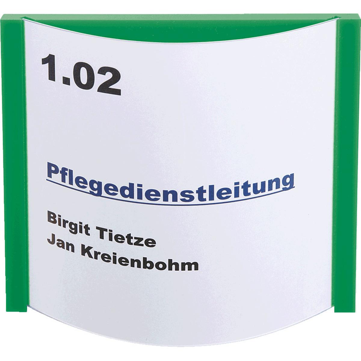 Dieses gewölbte, funktionale Türschild mit Antireflex-Abdeckung ist in 5 Farben erhältlich. Papiereinlagen müssen separat bestellt werden.