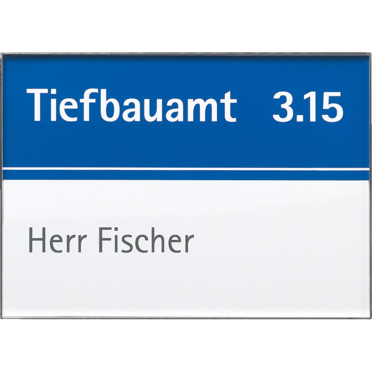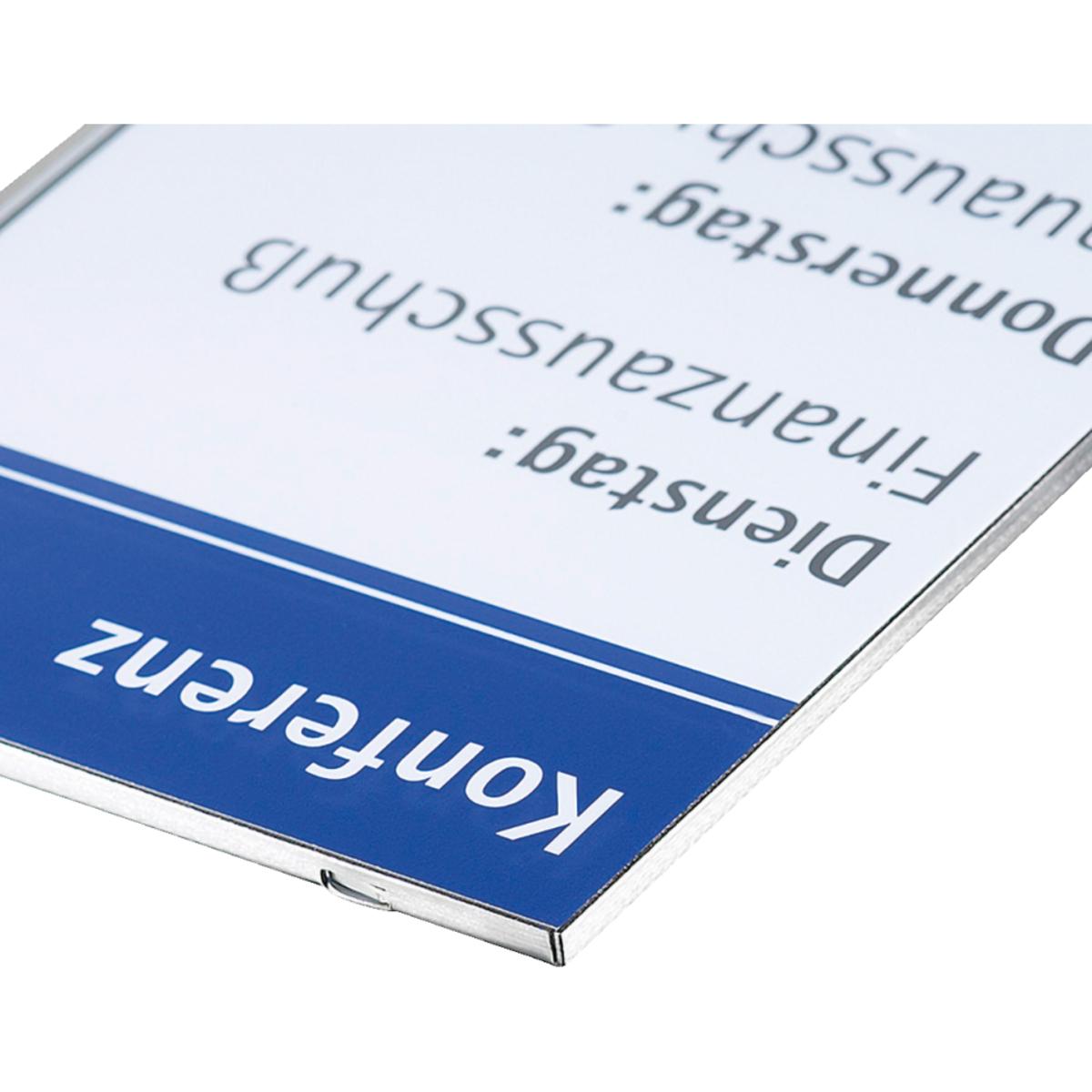 Elegantes, gewölbtes Türschild aus Edelstahl mit entspiegelter Abdeckung für optimale Lesbarkeit. Vielseitig einsetzbar als Raumbeschilderung oder Etagenwegweiser. Erhältlich in zwei Formaten und wahlweise zur Klebe- oder Schraubmontage. Die Beschriftung erfolgt über individuell bedruckbare Einlagen (separat erhältlich). Ideal zur Orientierung für Mitarbeiter und Besucher.