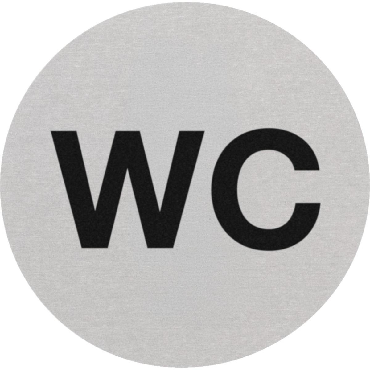 Auswahl: Türschild WC, mit Text, Aluminium, selbstklebend, Ø 75mm
