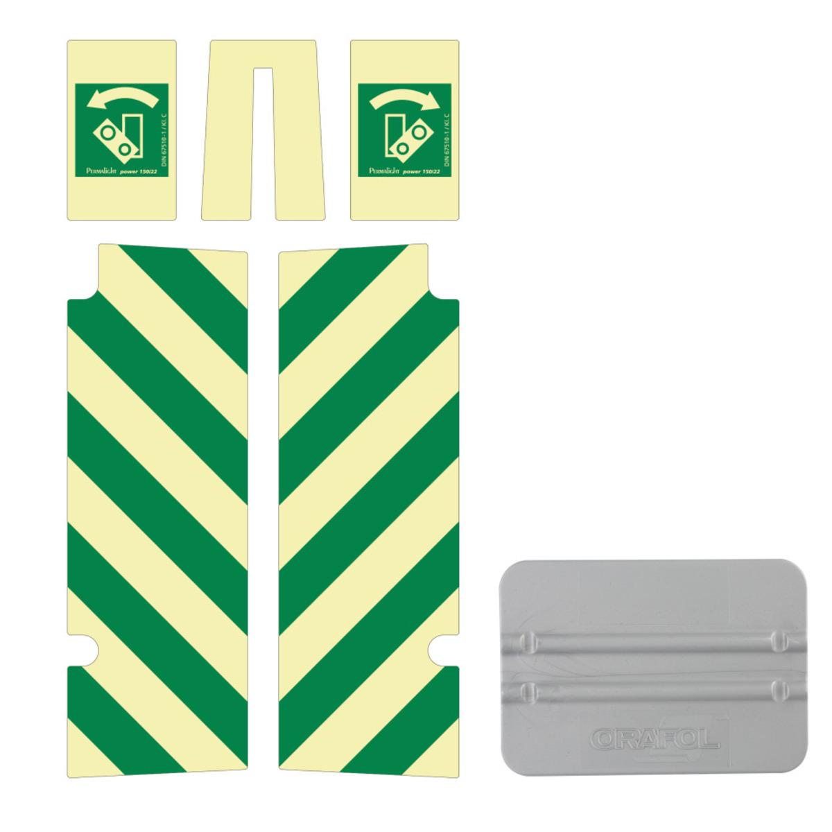PERMALIGHT® power Aufkleberset für den Türwächter, bestehend aus 5 Aufklebern in PERMALIGHT® Power-Qualität und Rakel zum Anbringen. Durch eine einfache Verklebung wird der Türwächter nachleuchtend und ist im Dunkeln sofort zu erkennen.