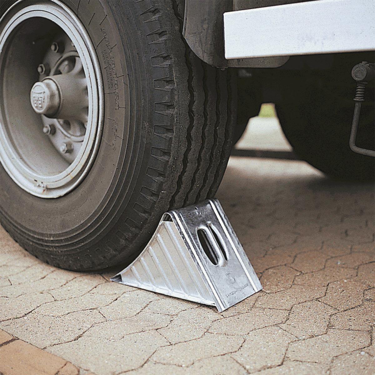 Keil, welcher das Fortrollen von Fahrzeugen verhindert z.B. beim Be- und Entladung auf unebenen Flächen