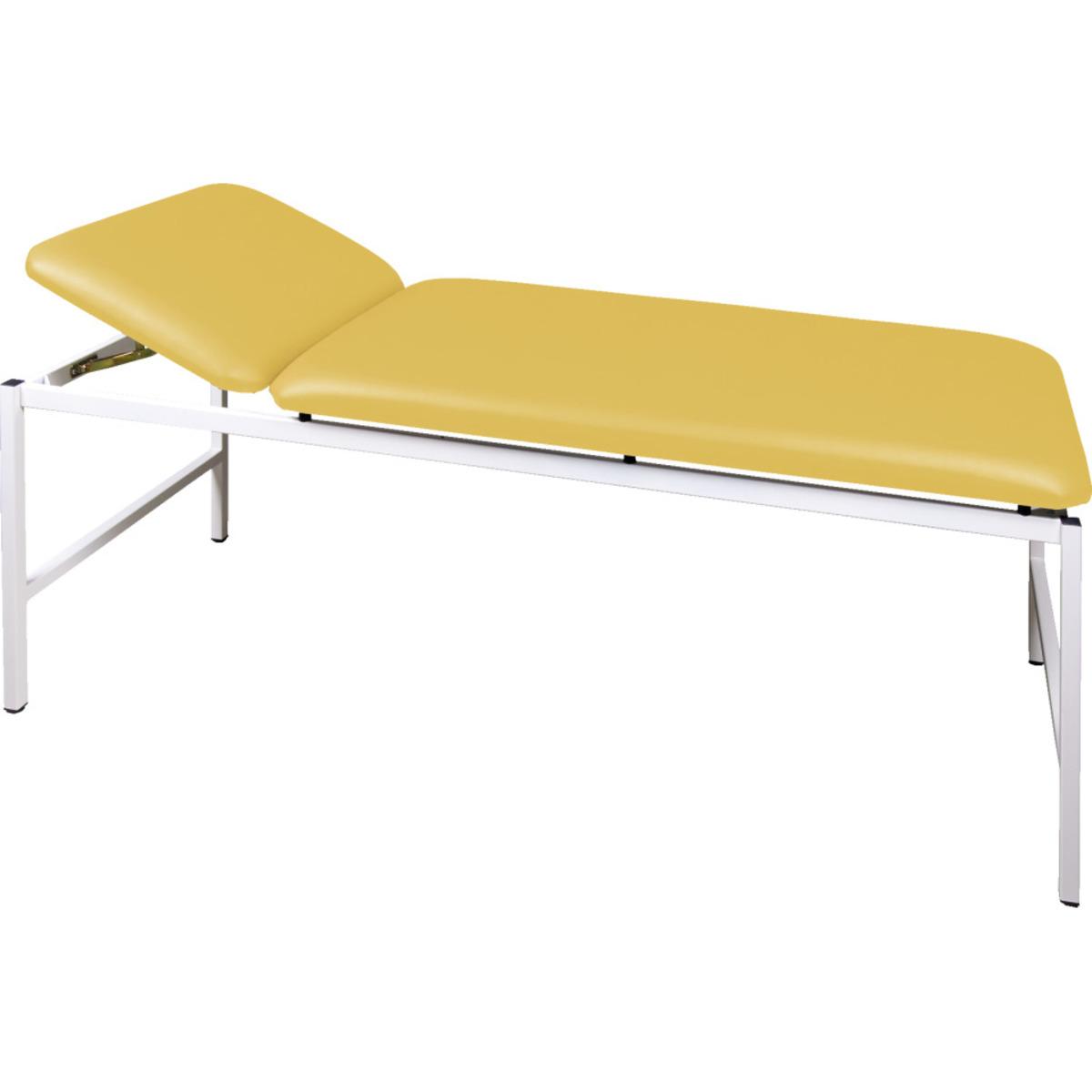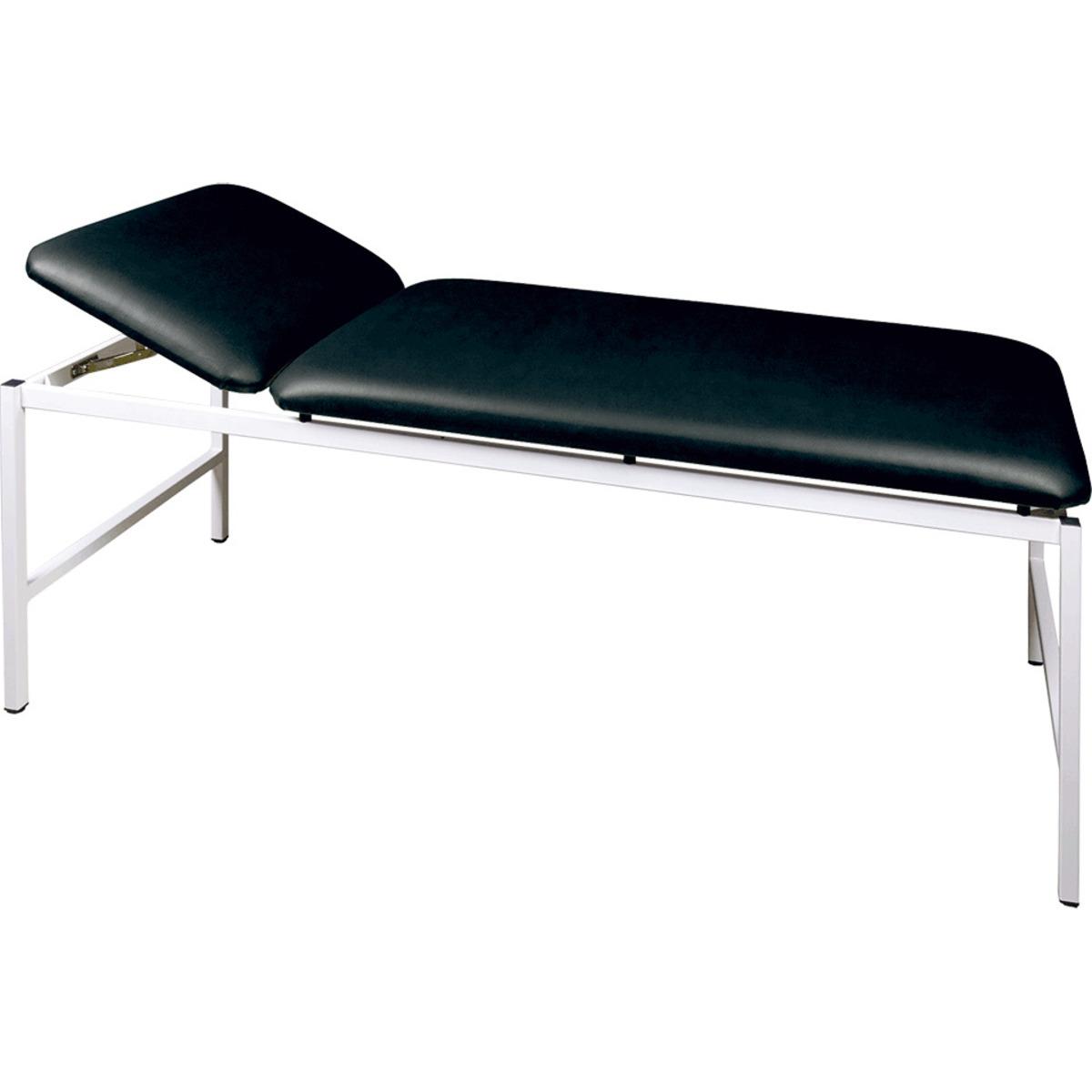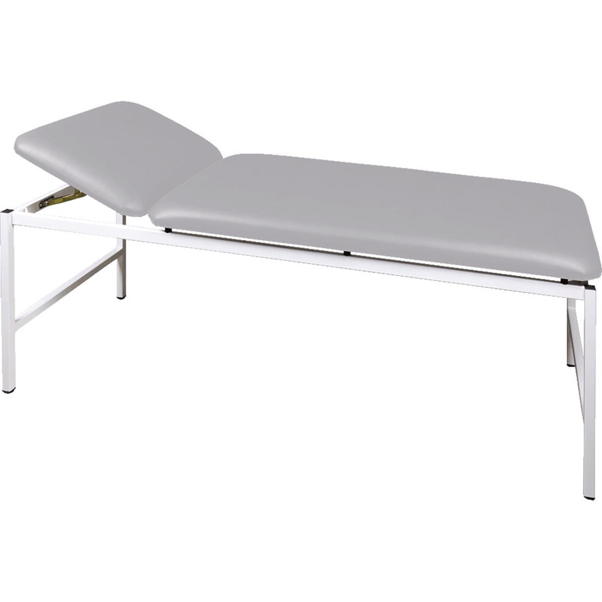 Bequeme, 2-teilige Untersuchungsliege für Sanitäts- und Ruheräume. Kopf- und Fußteile durch Raster mehrstufig verstellbar.