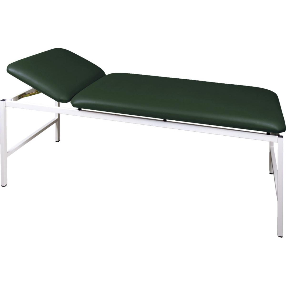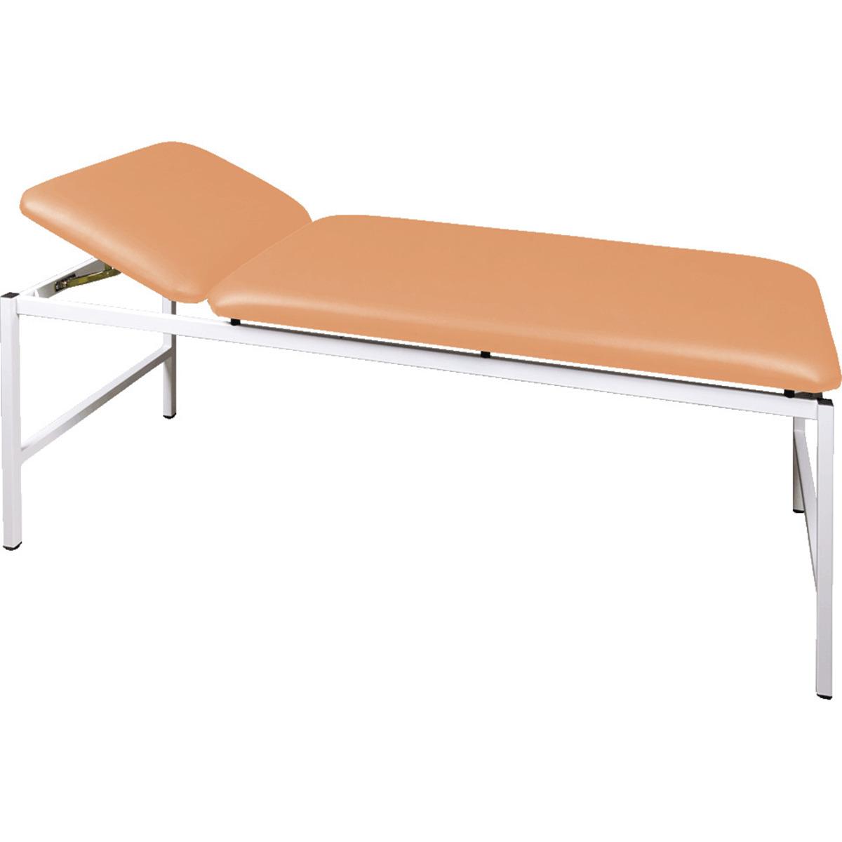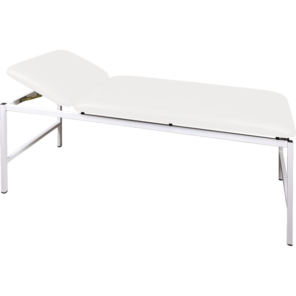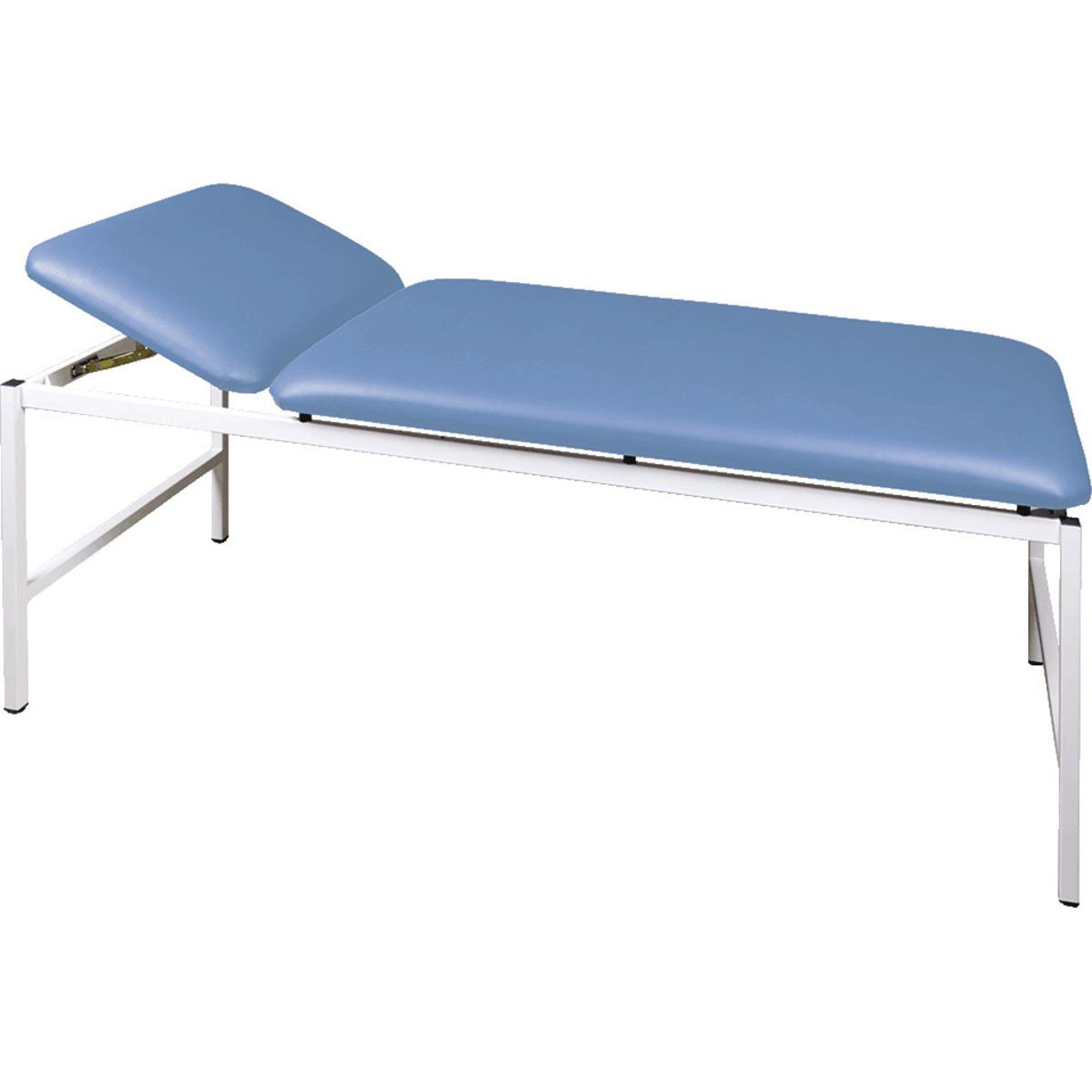 Bequeme, 2-teilige Untersuchungsliege für Sanitäts- und Ruheräume. Kopf- und Fußteile durch Raster mehrstufig verstellbar.