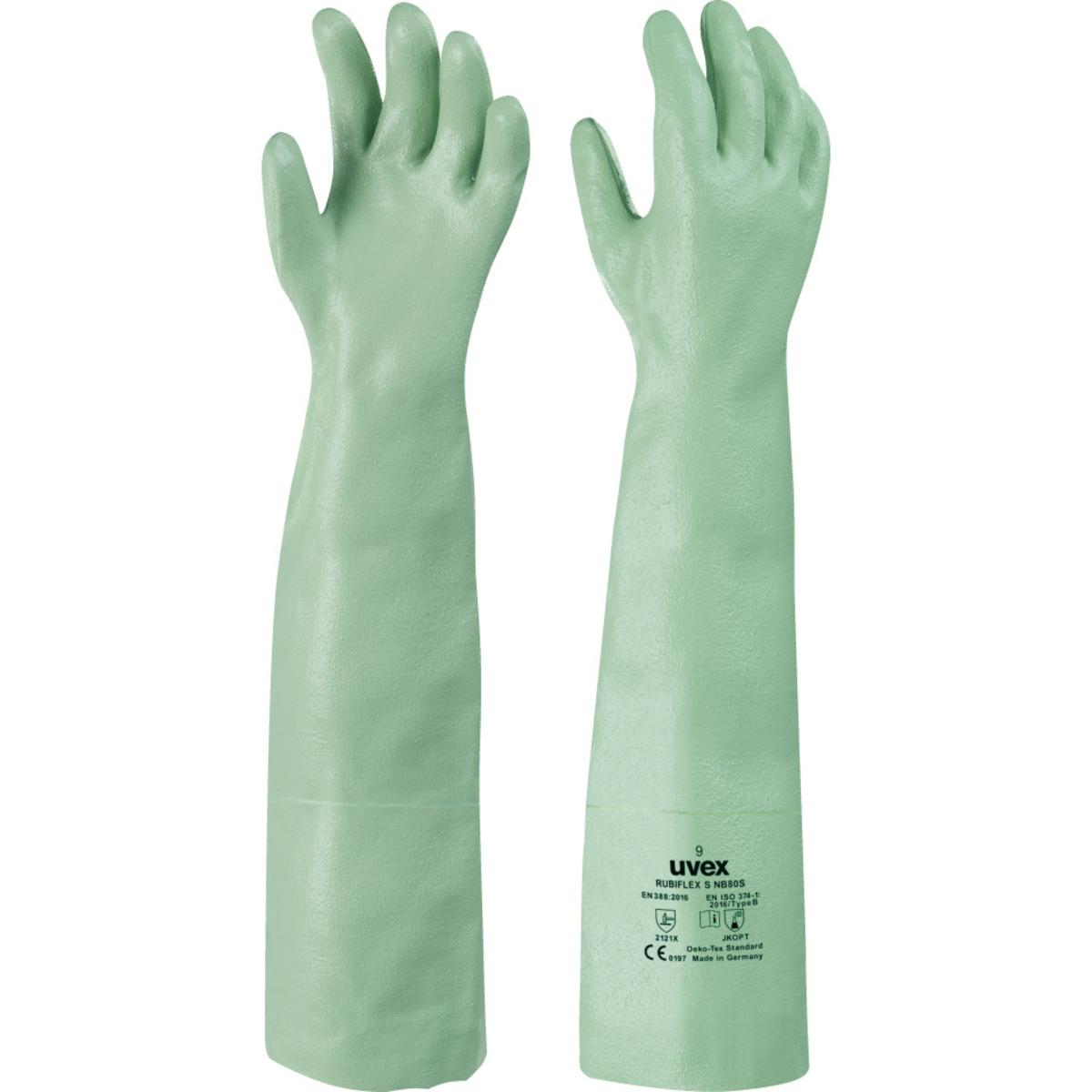 Auswahl: uvex Chemikalienschutzhandschuh Rubiflex NB 60 S, Kat.III, grün, 600mm, Größe 10
