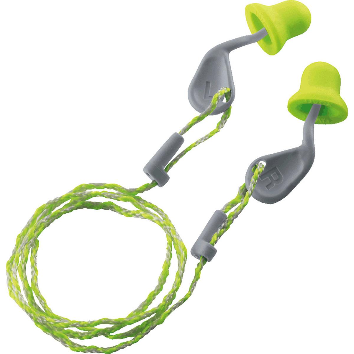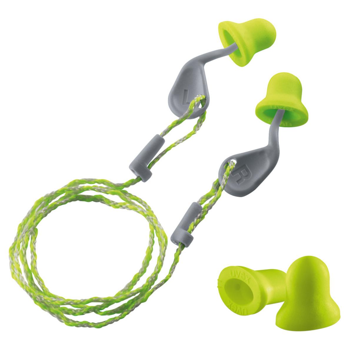 Praktische Gehörschutzstöpsel uvex xact-fit mit Daumenmulden ergonomische Form für bequemen Sitz, passt sich der Form und Größe des Gehörgangs an und sorgt für sicheren Lärmschutz, mit Stil und Kordel für einfaches Handling in Bereichen mit wechselnder Lärmbelastung oder als spenderfähige Ersatzstöpsel