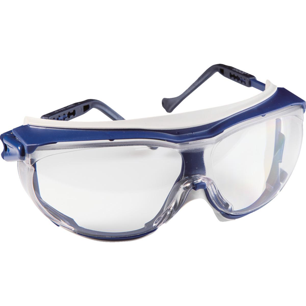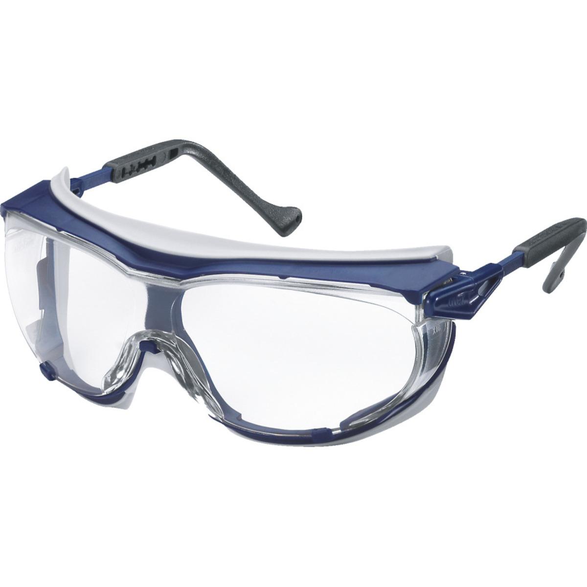Schutzbrille uvex skyguard NT mit flexiblen TPU-Auflagen, die sich dem Gesicht individuell anschmiegen und die Augen gegen umherfliegende Partikel abschirmen, hervorragender Rundumschutz, perfekter Sitz durch mehrstufige Bügellängenverstellung und zweistufige Inklination