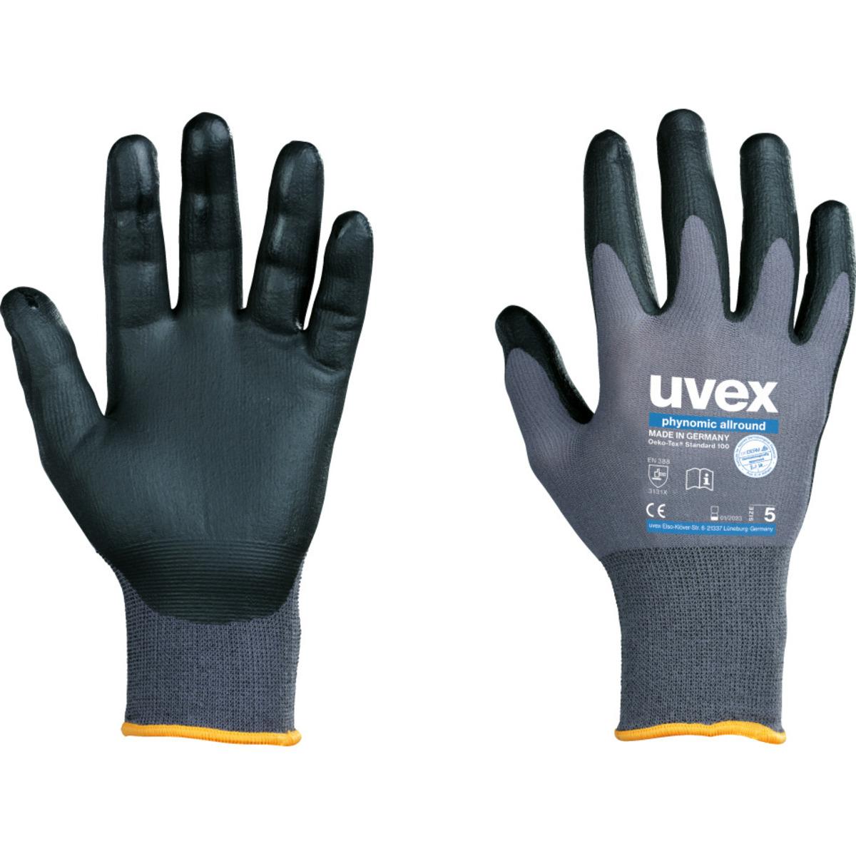 Leichter und vielseitiger Schutzhandschuh uvex phynomic allround mit ergonischer Passform, feuchtigkeitsabweisende Schaumbeschichtung an Innenhand und Fingerspitzen für hervorragenden Trockengriff, besonders flexibel, hoher Tragekomfort mit ausgezeichnetem Tastgefühl, atmungsaktiv, Strickbündchen, unempfindlich gegenüber Schmutz