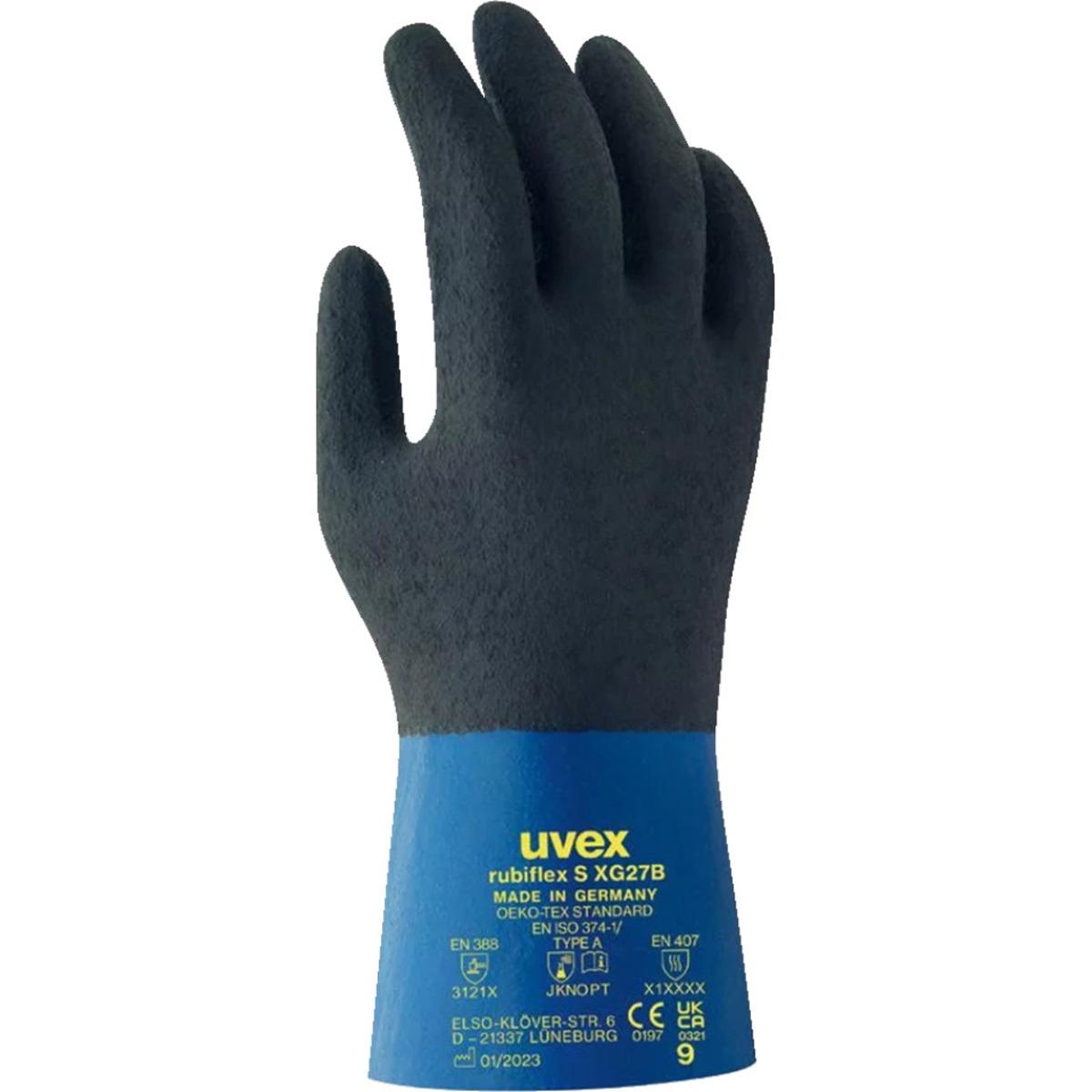 Auswahl: uvex Handschuh Rubiflex S XG27B, Kat.III, blau, Baumwolle/Nitril, 270mm, Größe 8