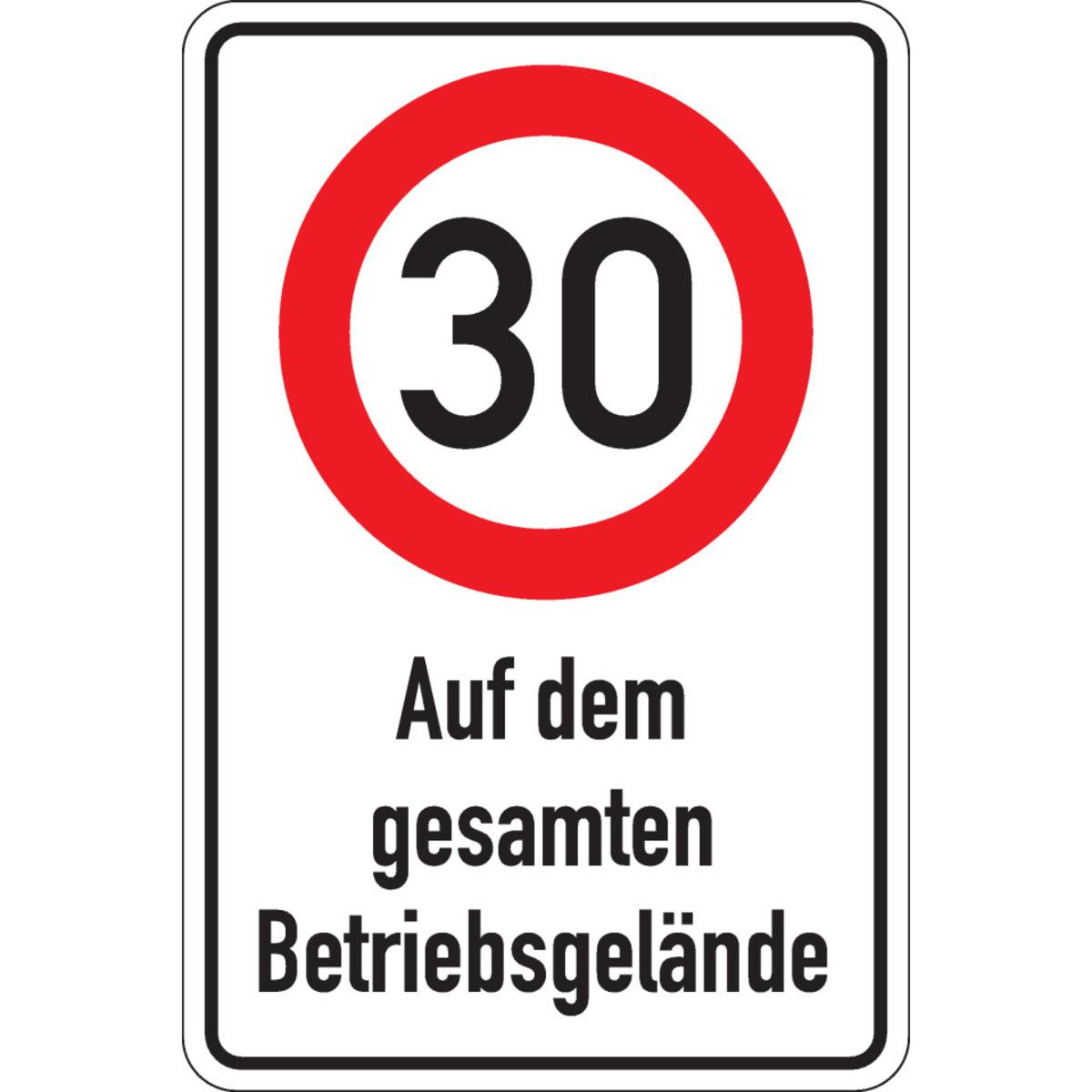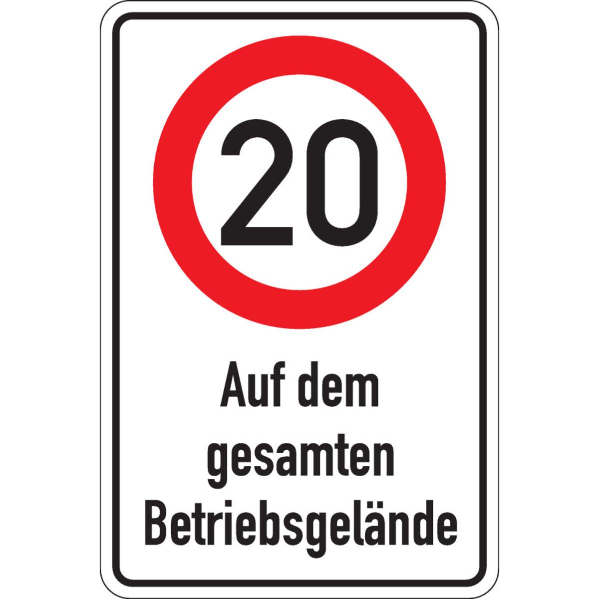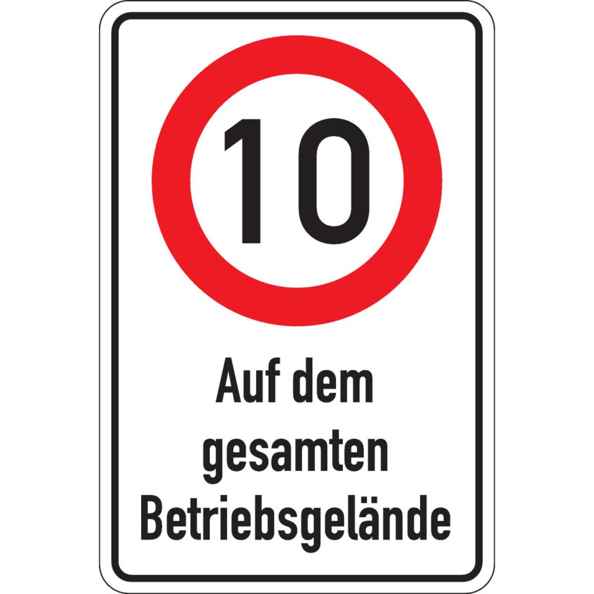 Mit dem Kombi-Verkehrszeichen "Maximalgeschwindigkeit 10 km/h" und "Auf dem gesamten Betriebsgelände" sorgen Sie für Orientierung auf dem Betriebsgelände und sichern eine reibungslose Logistik.