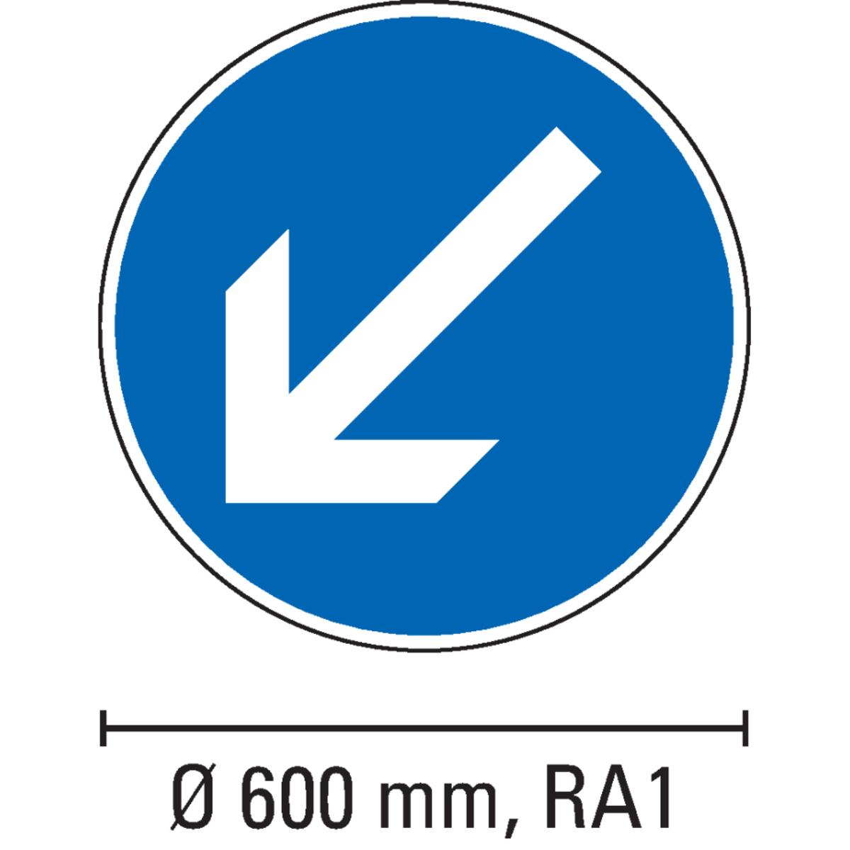 Auswahl: Verkehrszeichen Fahrtrichtung links vorbei, Nr.222-10, Alu RA1, reflekt., Ø 600mm