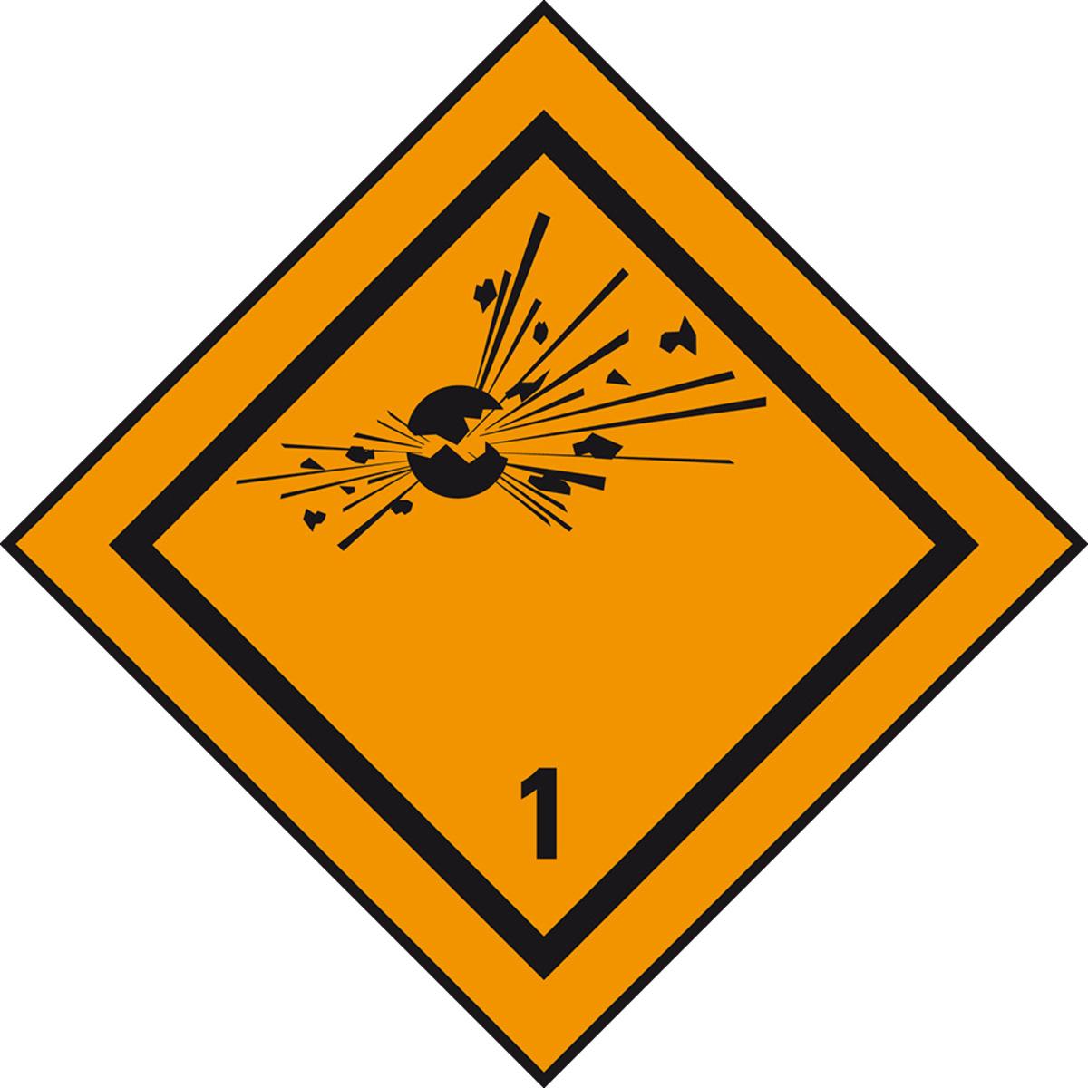 Informieren Sie mit dem Verpackungskennzeichen Klasse 1 - "Explosive Stoffe" Spediteure und Empfänger über Inhalt und Handhabung der Versandstücke, um die Sicherheit des Gefahrguts und der beteiligten Personen zu gewährleisten.