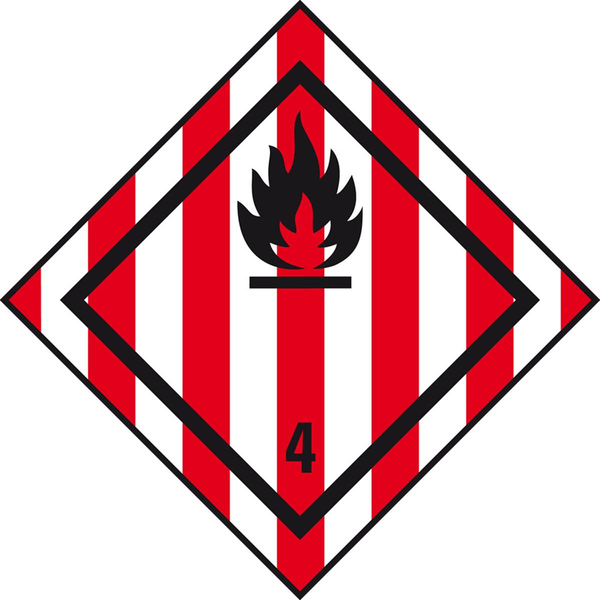 Auswahl: Verpackungskennzeichen Kl.4.1 Entzündb. feste Stoffe, Folie, seewasserb., 100x100mm