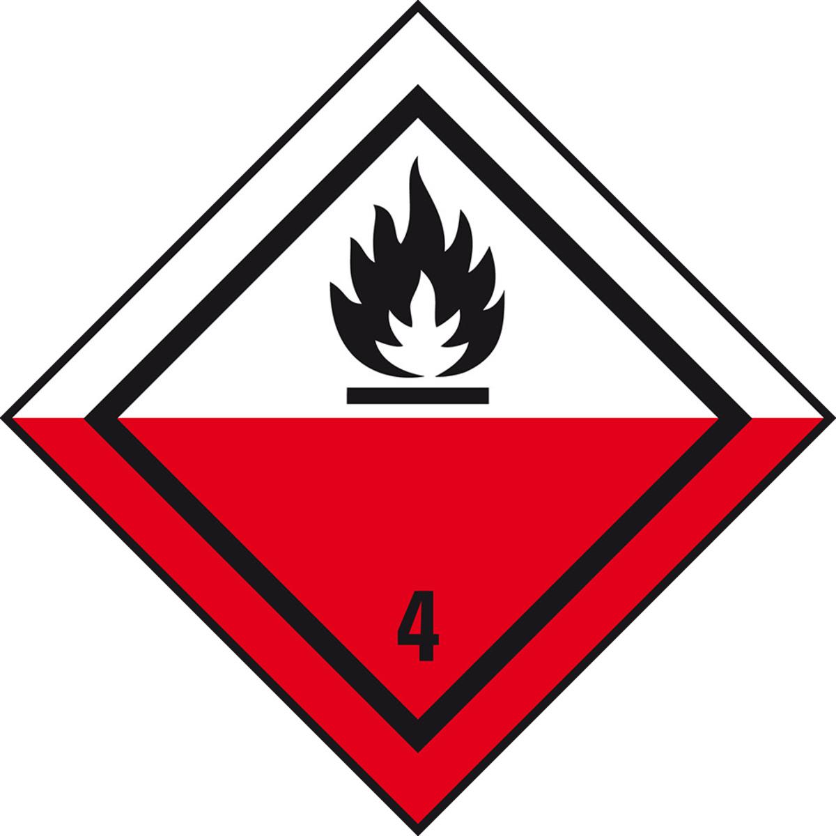 Informieren Sie mit dem Verpackungskennzeichen Klasse 4.2 - "Selbstentzündliche Stoffe" Spediteure und Empfänger über Inhalt und Handhabung der Versandstücke, um die Sicherheit des Gefahrguts und der beteiligten Personen zu gewährleisten.