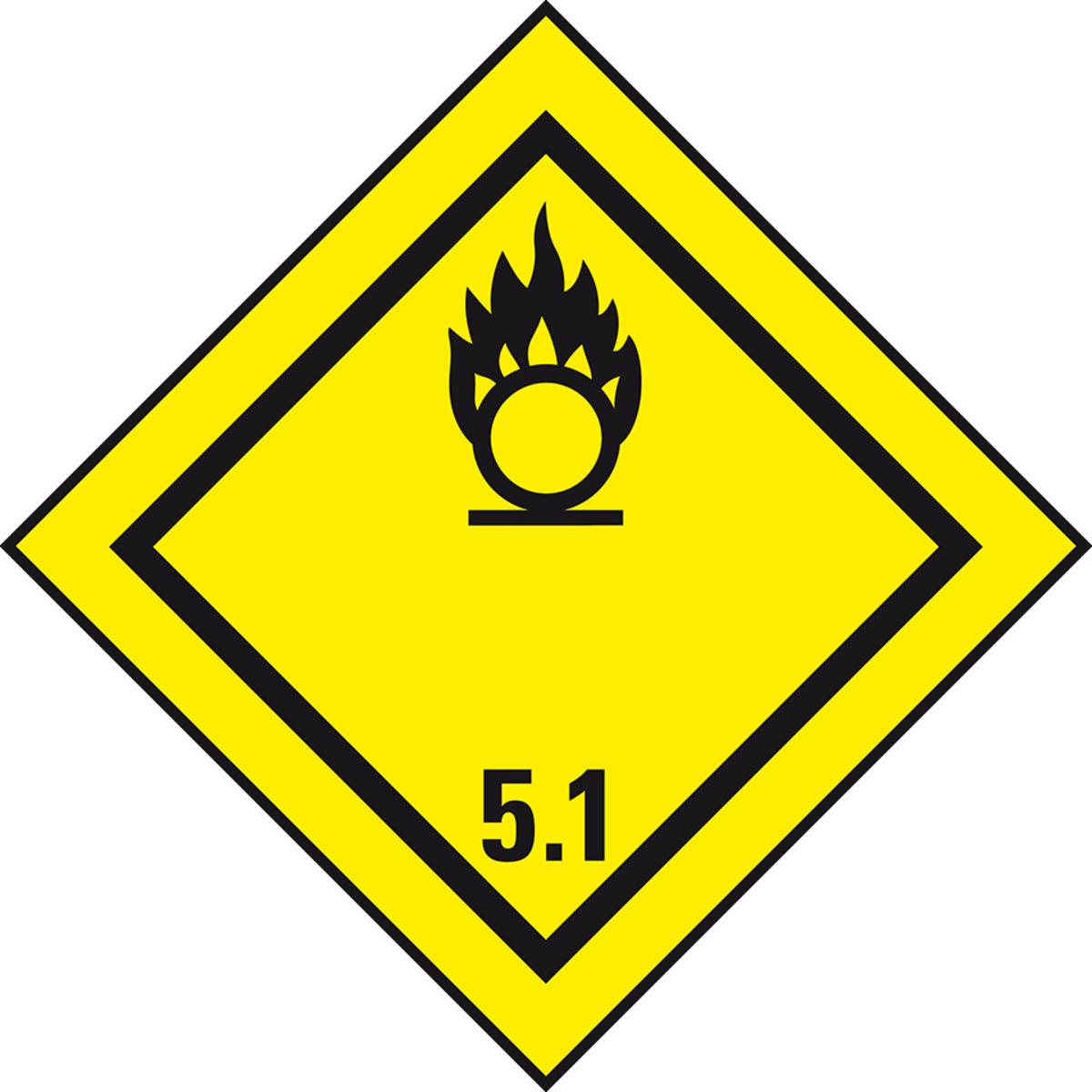 Informieren Sie mit dem Verpackungskennzeichen Klasse 5.1 - "Entzündend wirkende Stoffe" Spediteure und Empfänger über Inhalt und Handhabung der Versandstücke, um die Sicherheit des Gefahrguts und der beteiligten Personen zu gewährleisten.