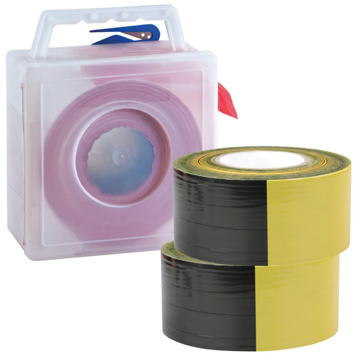 Vorteils-Set Absperrband Basic mit Warnbandspender mit stabilem Tragegriff und eingebautem Messer. Das transparente Material ermöglicht die Bandlängenkontrolle. Das Absperrband ist für leichte Anforderungen und kurzfristige Einsätze geeignet.