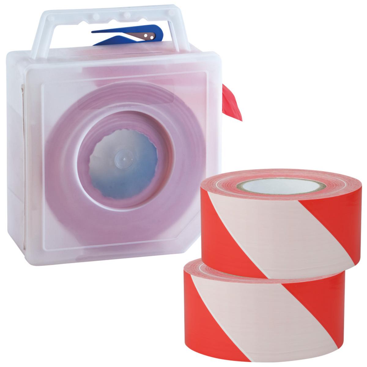 Auswahl: Vorteils-Set Absperrband Basic, 2x Absperrb., rot/weiß schraffiert, Warnbd.spender
