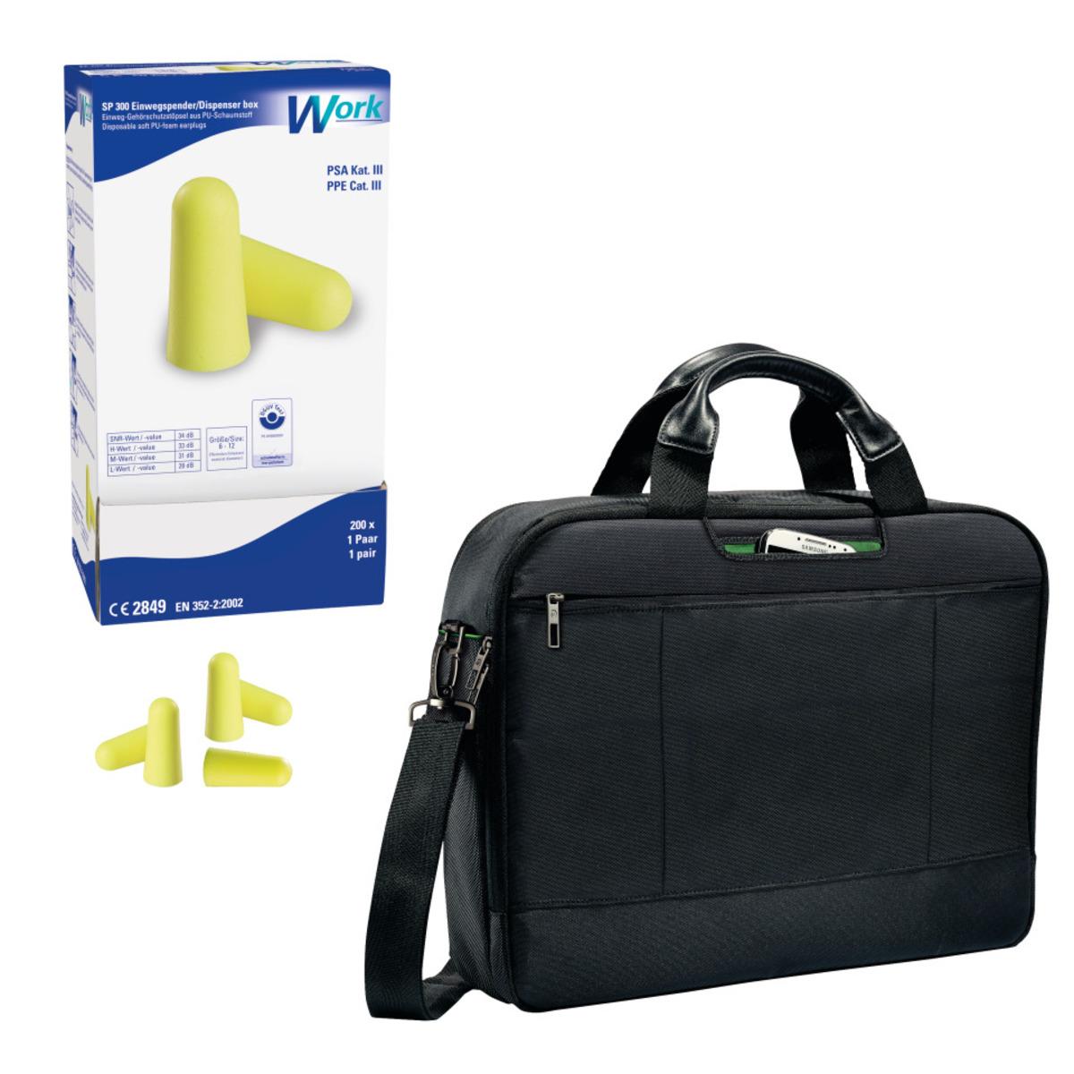 Auswahl: Vorteils-Set mobiles Arbeiten, Gehörschutzsstöpsel WORK, Leitz 15.6" Laptoptasche