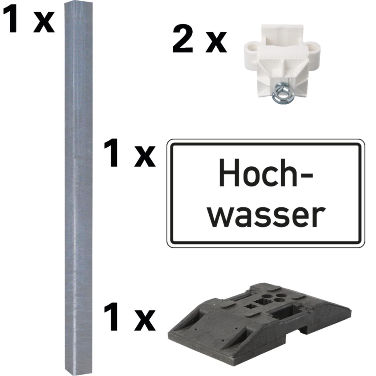 Das Vorteils-Set Hochwasser enthält alle notwendigen Komponenten für die schnelle und normgerechte Aufstellung einer Hochwasser-Beschilderung im öffentlichen Verkehrsraum. Das Set eignet sich für den Einsatz im Geltungsbereich der StVO und gewährleistet eine klare und deutliche Kennzeichnung von Gefahrenstellen.