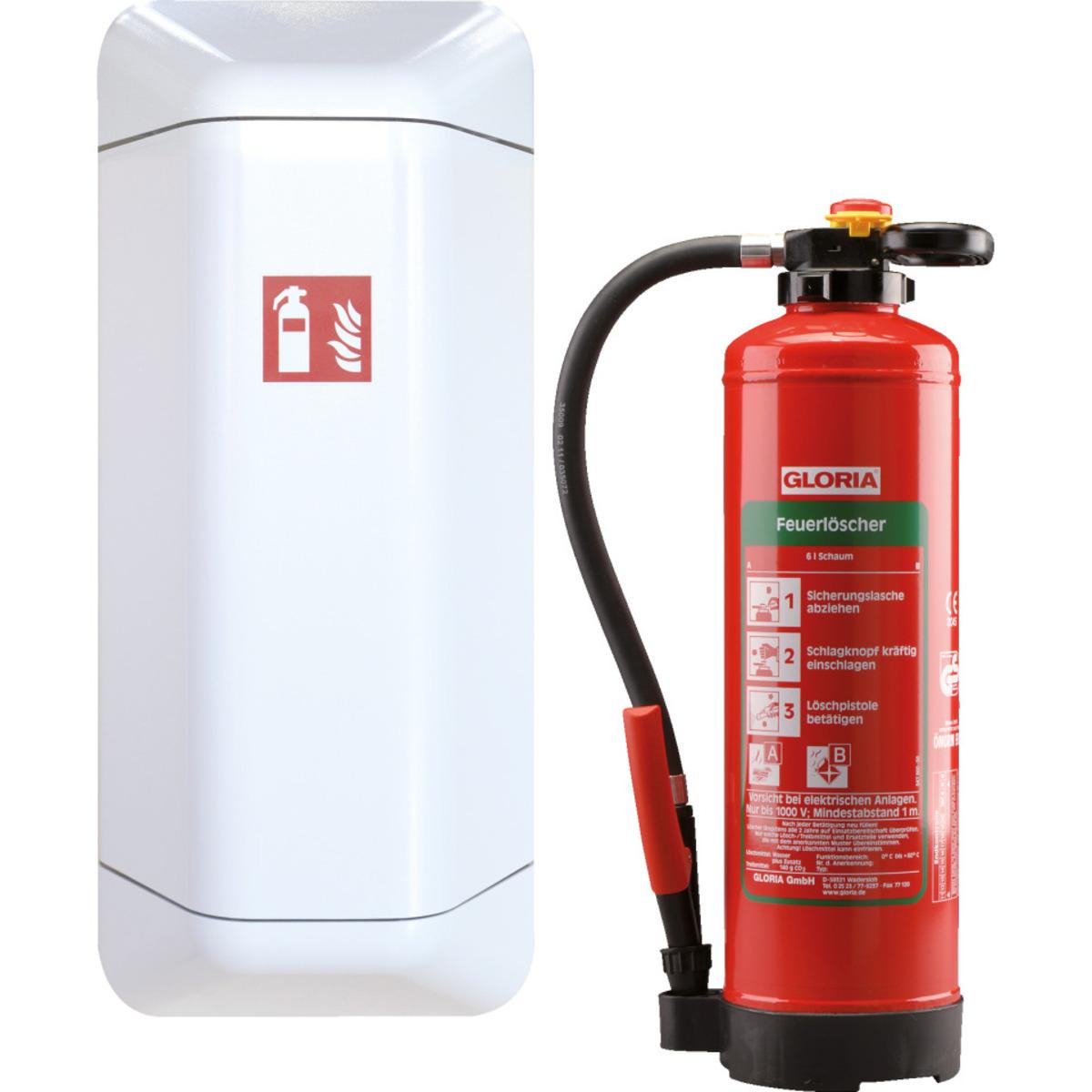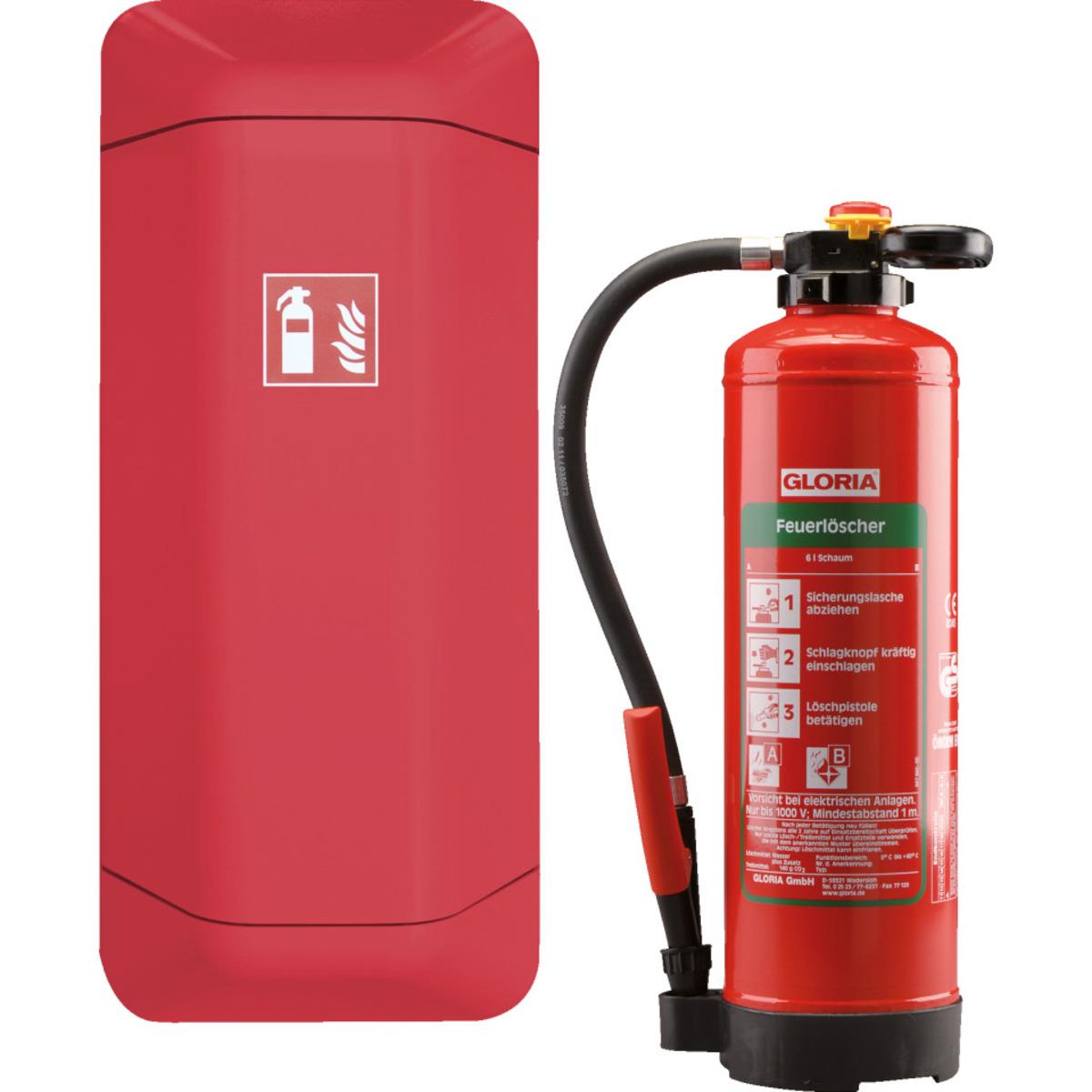 Vorteils-Set Schaumlöscher mit Schrank zur sicheren Aufbewahrung und schnellem Zugriff im Notfall.