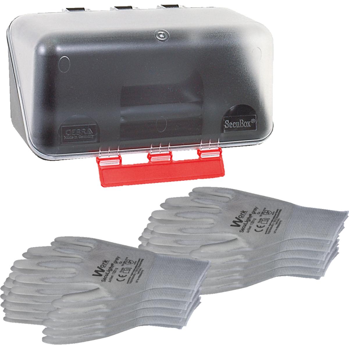 Auswahl: Vorteils-Set SecuBox Mini, 10xSchutzhandsch.SecuLight® grey, Größe 11