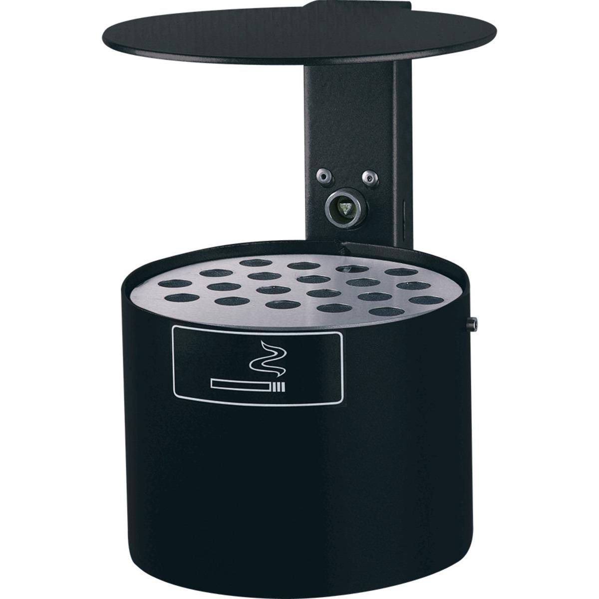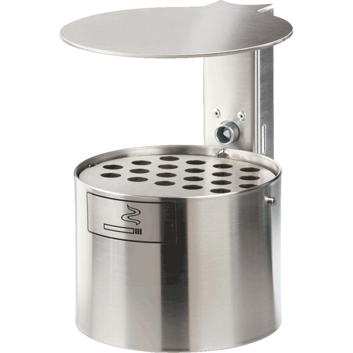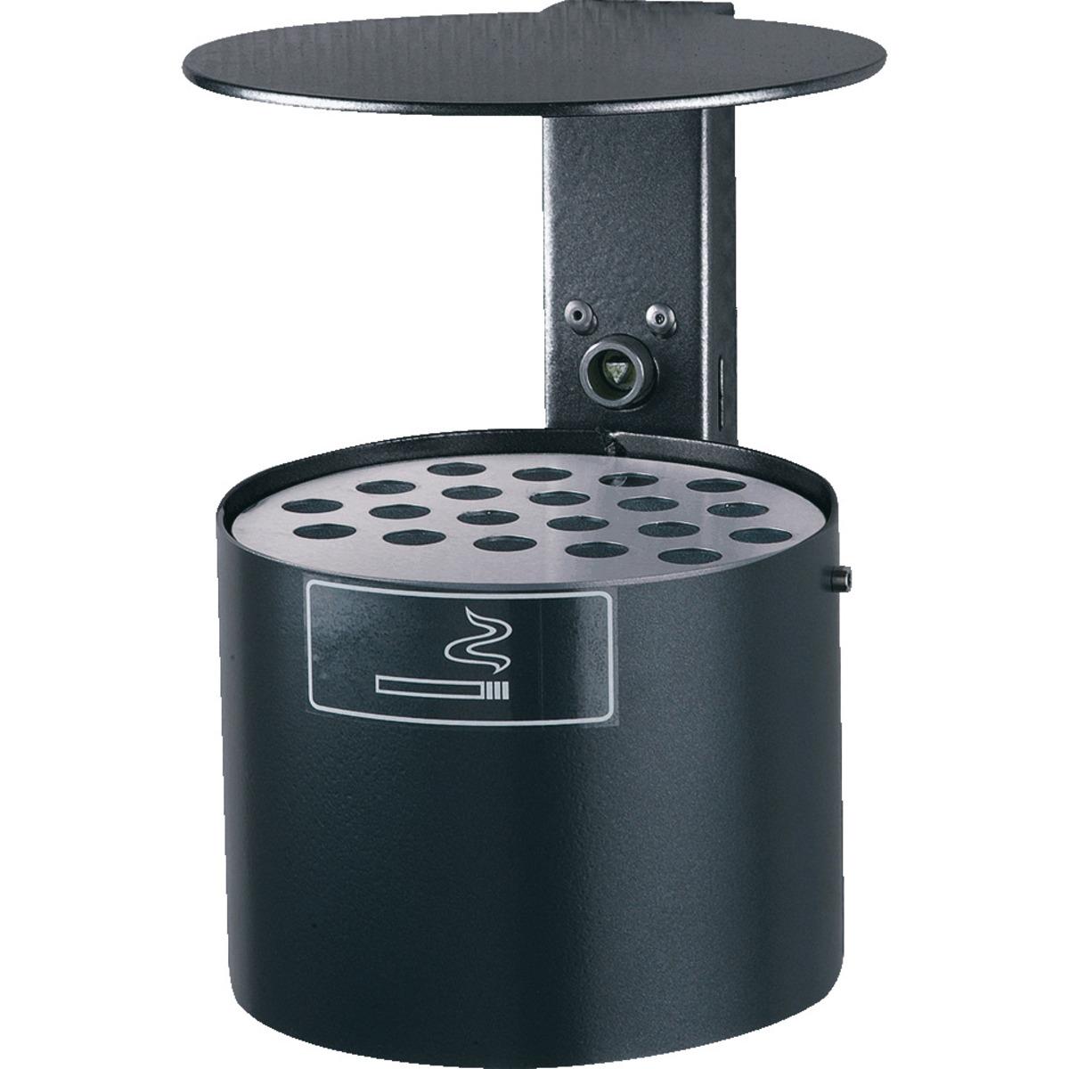Runder Wandascher mit Dach für den dauerhaften Außeneinsatz, zur Wand- und Pfostenbefestigung, das Regenschutzdach und der gelochte Boden für den Wasserablauf bieten zusätzlichen Schutz vor Wasser und Feuchtigkeit, schnell und einfach mit Dreikantschlüssel zu öffnen und entleeren