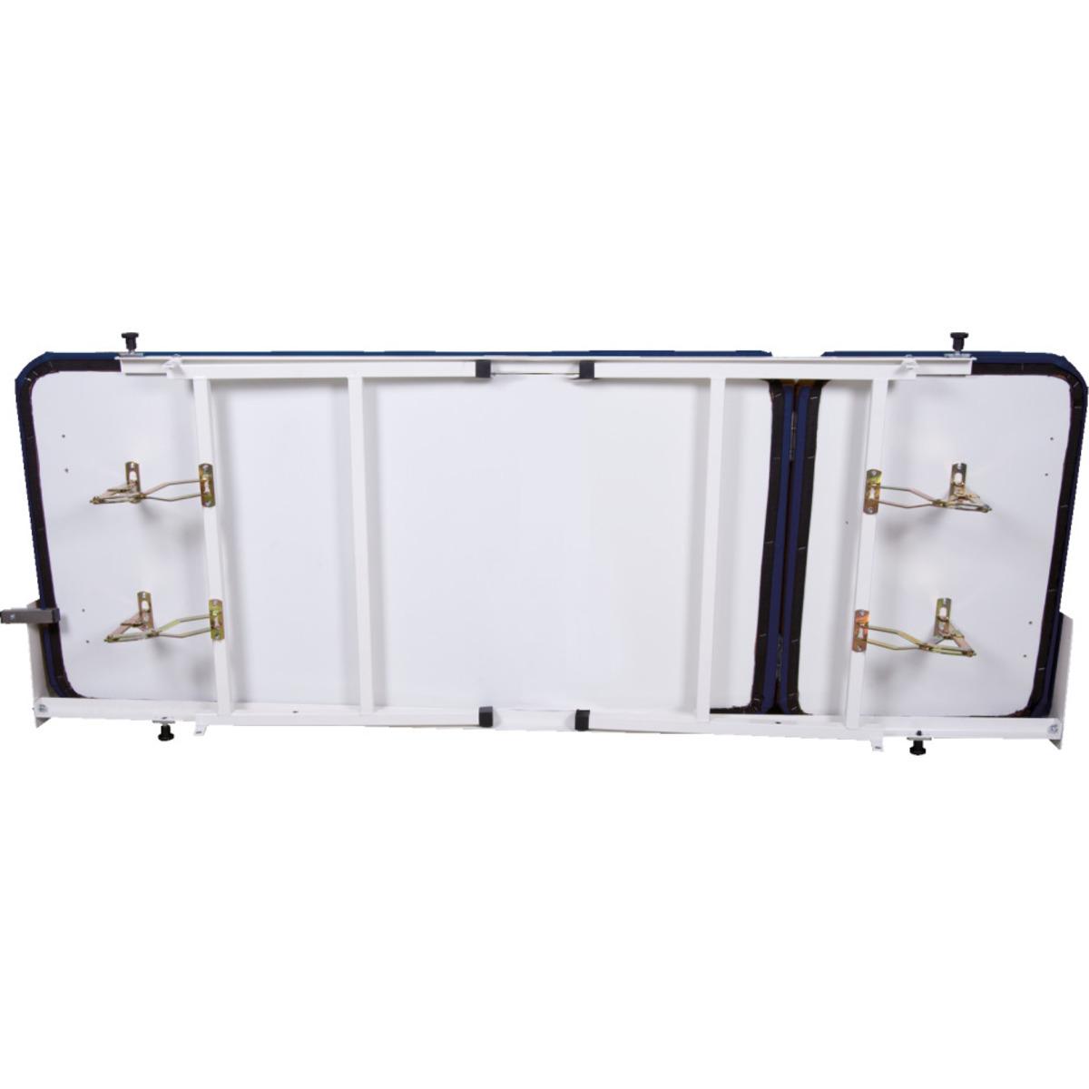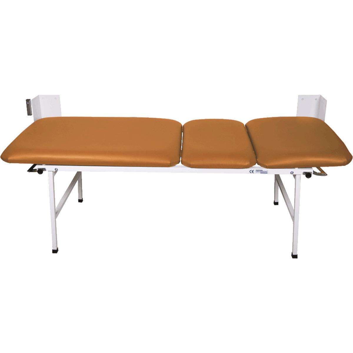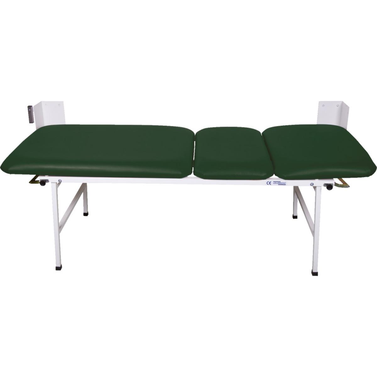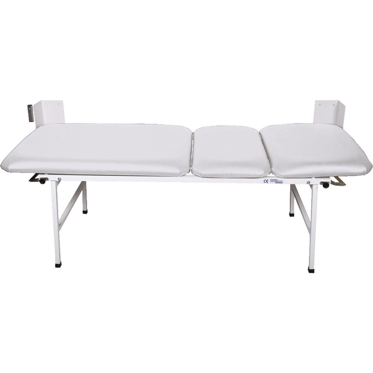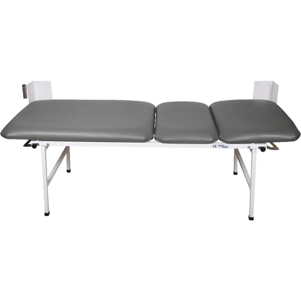Bequeme, 3-teilige Wanklappliege für Sanitäts- und Ruheräume. Mit Gasdruckfedern zum einfachen Aufklappen der Füße. Mit verstellbarem Kopf- und Fußteil.