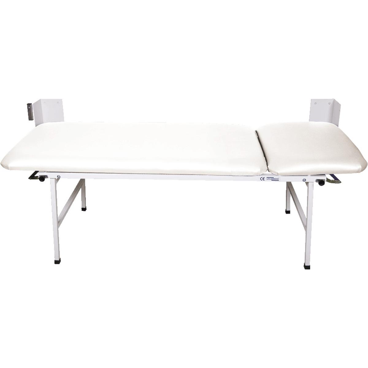 Bequeme, 2-teilige Wanklappliege für Sanitäts- und Ruheräume. Mit Gasdruckfedern zum einfachen Aufklappen der Füße. Das verstellbare Kopfteil kann wahlweise links oder rechts angeschlagen werden.